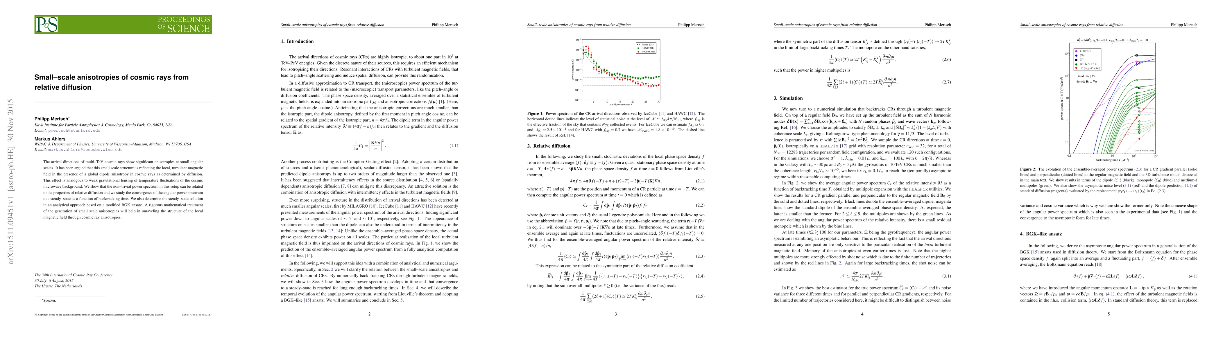 This paper investigates the small-scale anisotropies in the arrival directions of multi-TeV cosmic rays, attributing them to local turbulent magnetic fields. It employs a modified BGK ansatz to analytically determine the steady-state solution and convergence of the angular power spectrum, providing insights into the structure of the local magnetic field.