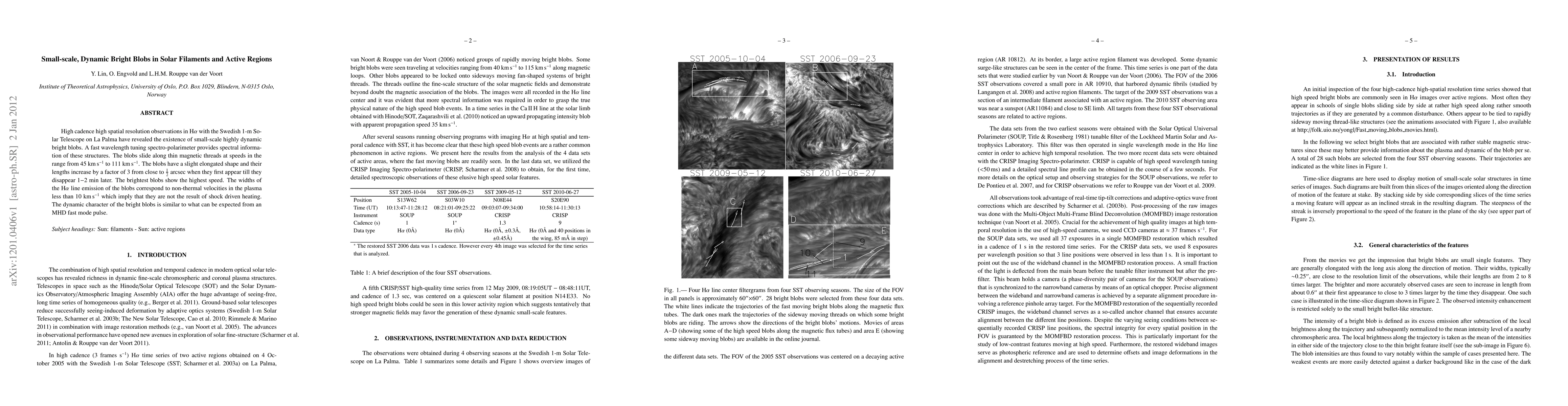 Small-scale bright blobs in solar filaments have been observed moving at speeds of up to 111 km/s, indicating dynamic magnetic activity, while their emission widths suggest non-thermal velocities.