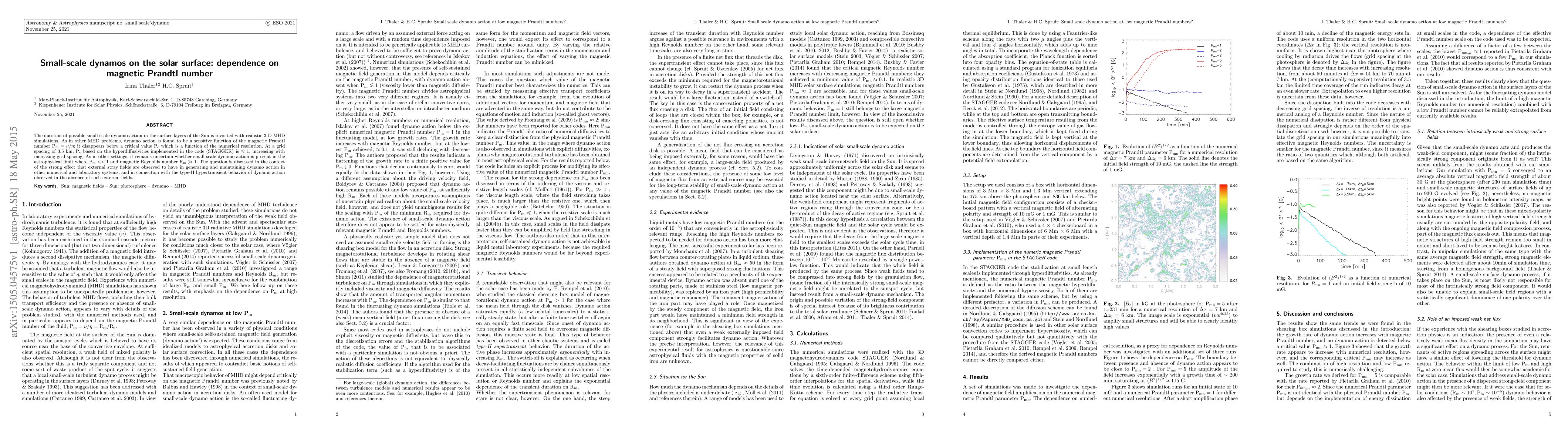 The question of possible small-scale dynamo action in the surface layers of the Sun is revisited with realistic 3D MHD simulations. As in other MHD problems, dynamo action is found to be a sensitive function of the magnetic Prandtl number ${\rm P_{\rm m} }=\nu/\eta$; it disappears below a critical value ${\rm P_{\rm c}}$ which is a function of the numerical resolution. At a grid spacing of 3.5 km, ${\rm P_{\rm c}}$ based on the hyperdiffusivities implemented in the code (STAGGER) is $\approx 1$, increasing with increasing grid spacing. As in other settings, it remains uncertain whether small scale dynamo action is present in the astrophysical limit where ${\rm P_{\rm m} }<<1$ and magnetic Reynolds number ${\rm R_m}\gg 1$. The question is discussed in the context of the strong effect that external stray fields are observed to have in generating and maintaining dynamo action in other numerical and laboratory systems, and in connection with the type-II hypertransient behavior of dynamo action observed in the absence of such external fields.