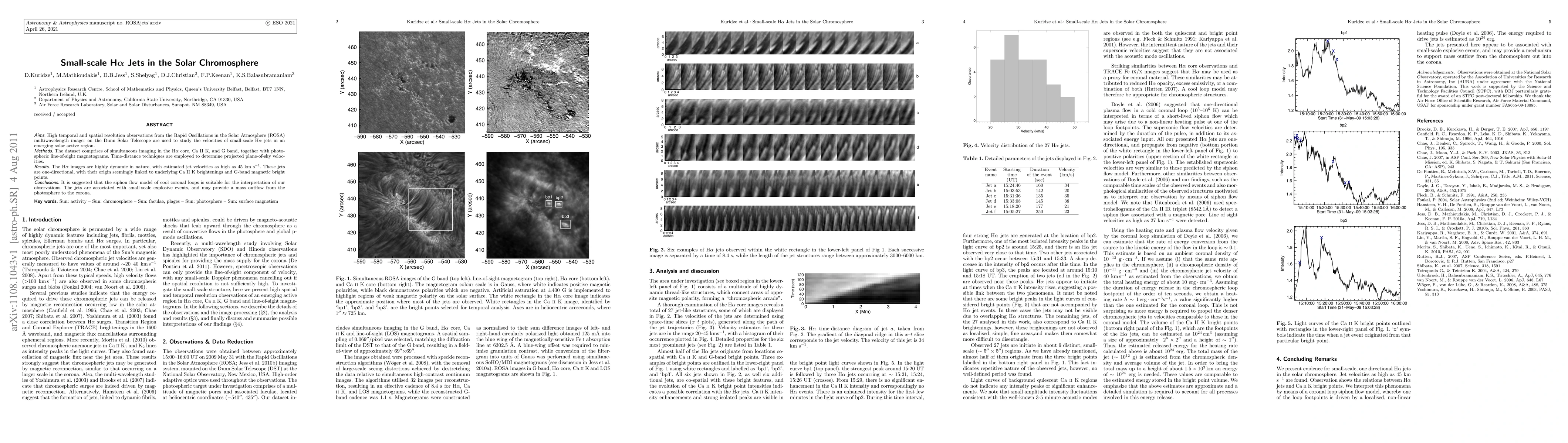 This study uses high-resolution observations from the ROSA imager to analyze small-scale Hα jets in an emerging solar active region, finding jet velocities up to 45 km s^{-1}. These jets originate from Ca II K brightenings and G-band magnetic points, suggesting a connection to siphon flows in coronal loops.
