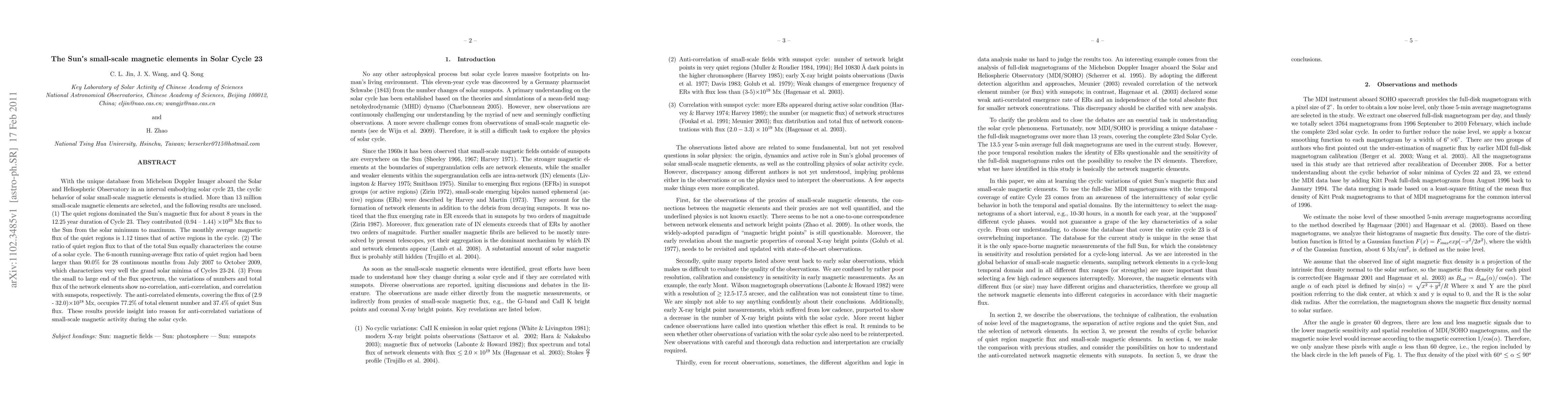 This study analyzes over 13 million small-scale magnetic elements from Solar Cycle 23, revealing that quiet regions dominated the Sun's magnetic flux for about 8 years, contributing significantly to the flux. The quiet regions' flux ratio to the total Sun's flux closely tracks the solar cycle, highlighting the grand solar minima of Cycles 23-24.