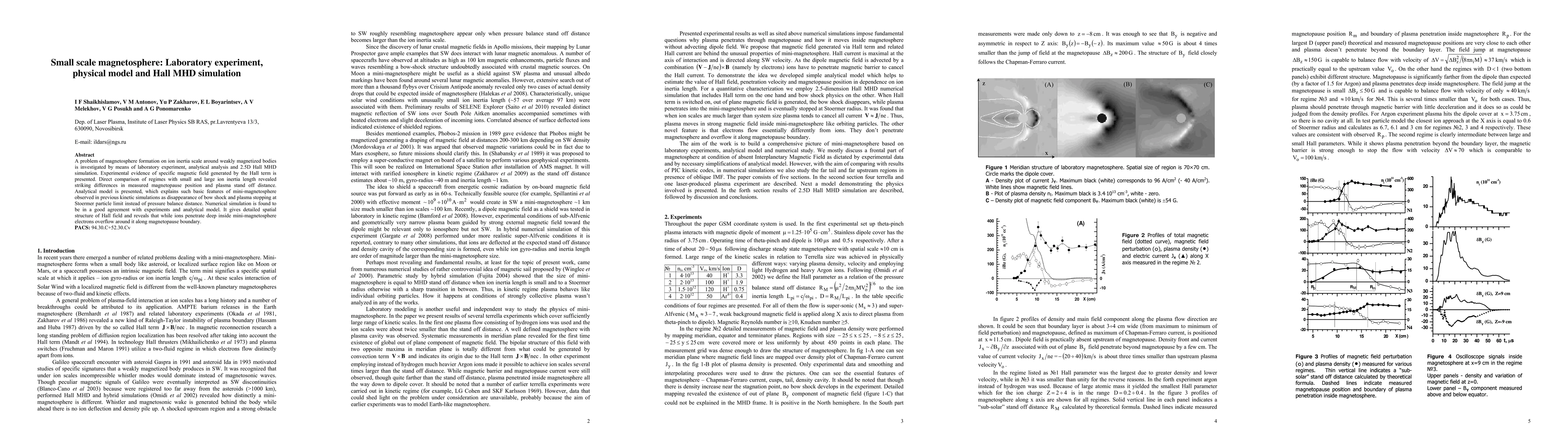 A problem of magnetosphere formation on ion inertia scale around weakly magnetized bodies is investigated by means of laboratory experiment, analytical analysis and 2.5D Hall MHD simulation. Experimental evidence of specific magnetic field generated by the Hall term is presented. Direct comparison of regimes with small and large ion inertia length revealed striking differences in measured magnetopause position and plasma stand off distance. Analytical model is presented, which explains such basic features of mini-magnetosphere observed in previous kinetic simulations as disappearance of bow shock and plasma stopping at Stoermer particle limit instead of pressure balance distance. Numerical simulation is found to be in a good agreement with experiments and analytical model. It gives detailed spatial structure of Hall field and reveals that while ions penetrate deep inside mini-magnetosphere electrons overflow around it along magnetopause boundary.