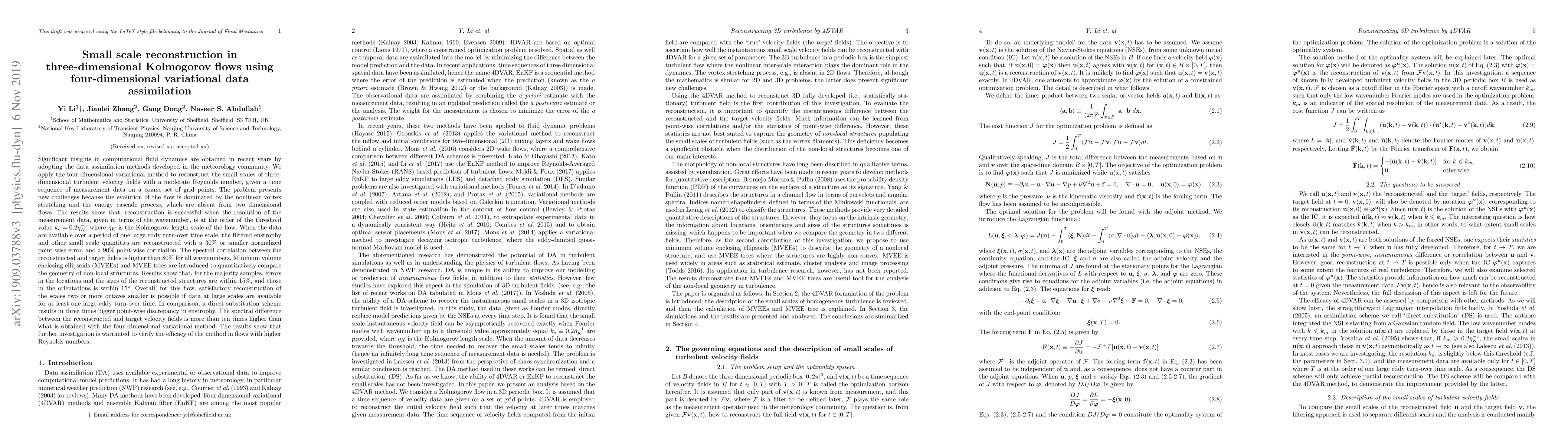 Researchers successfully reconstructed small scales in turbulent velocity fields using four-dimensional variational data assimilation with high accuracy, outperforming a direct substitution scheme, when large-scale measurement data is available over at least one large eddy turn-over time scale.