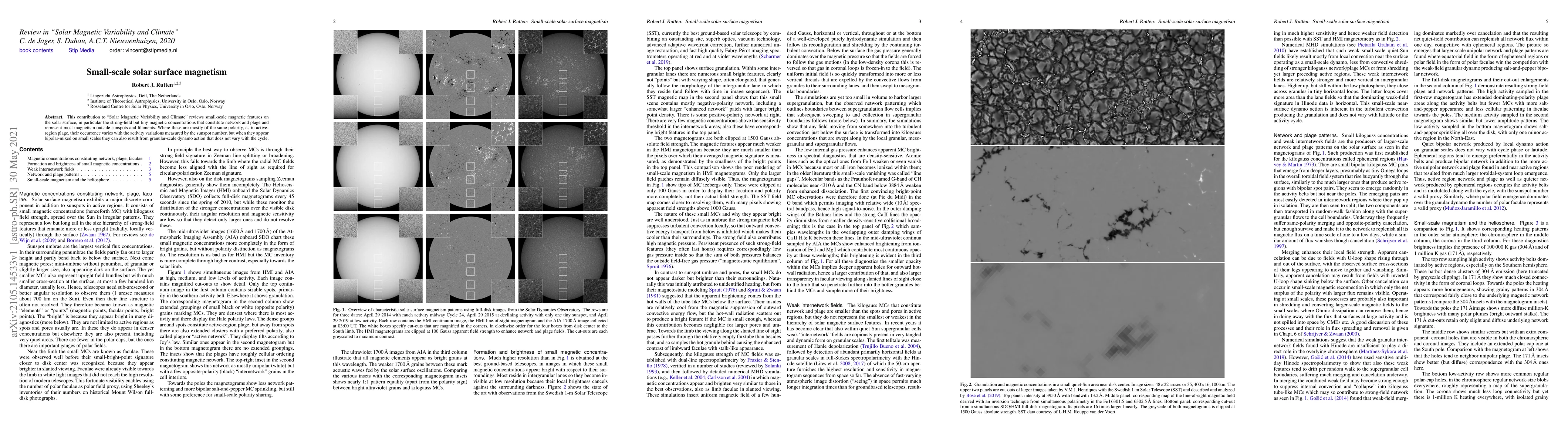 This paper reviews small-scale solar magnetic features, focusing on network and plage magnetism, which are strong-field concentrations outside sunspots. Their occurrence correlates with solar activity cycles, but bipolar-mixed features can arise from granular-scale dynamo processes independent of the cycle.