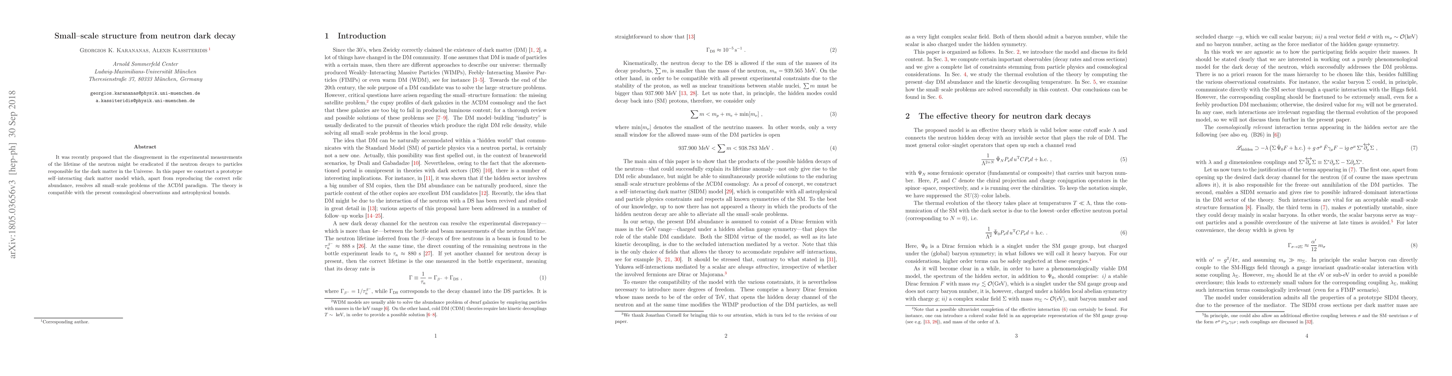 It was recently proposed that the disagreement in the experimental measurements of the lifetime of the neutron might be eradicated if the neutron decays to particles responsible for the dark matter in the Universe. In this paper we construct a proto- type self-interacting dark matter model which, apart from reproducing the correct relic abundance, resolves all small-scale problems of the $\Lambda$CDM paradigm. The theory is compatible with all present cosmological observations and astrophysical bounds.
