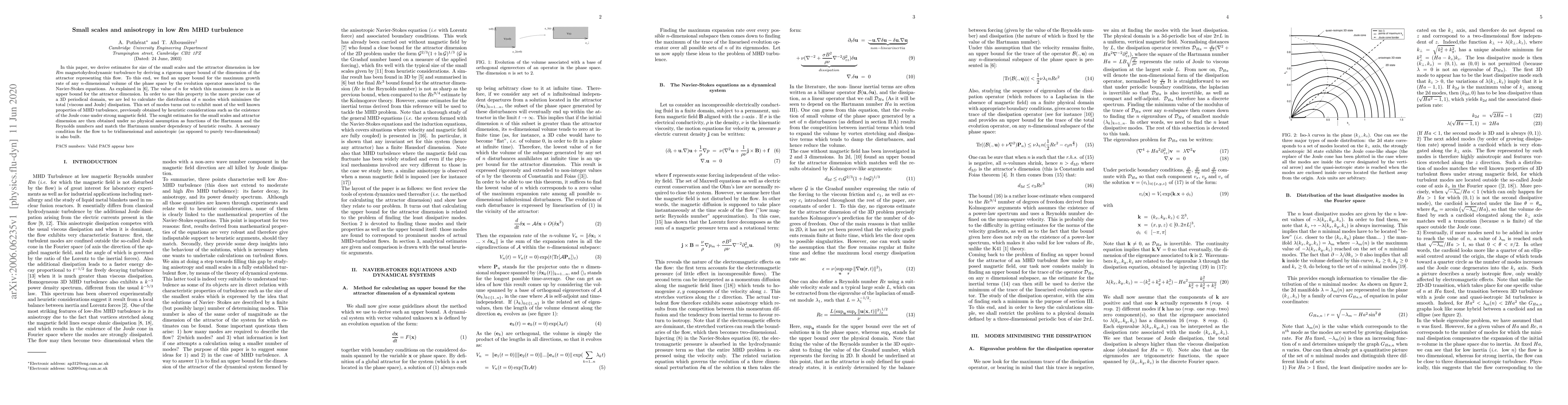 This paper rigorously estimates the size of small scales and the attractor dimension in low $Rm$ magnetohydrodynamic (MHD) turbulence, deriving an upper bound for the attractor dimension through the maximum growth rate of phase space volumes. The results match heuristic findings and establish a necessary condition for tridimensional and anisotropic flow.
