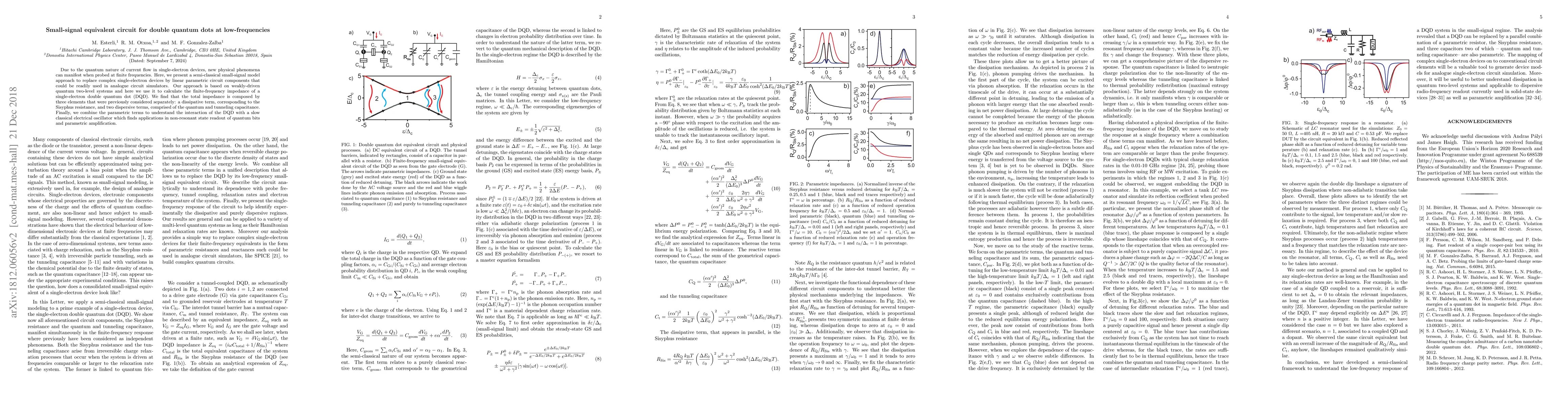 Due to the quantum nature of current flow in single-electron devices, new physical phenomena can manifest when probed at finite frequencies. Here, we present a semi-classical small-signal model approach to replace complex single-electron devices by linear parametric circuit components that could be readily used in analogue circuit simulators. Our approach is based on weakly-driven quantum two-level systems and here we use it to calculate the finite-frequency impedance of a single-electron double quantum dot (DQD). We find that the total impedance is composed by three elements that were previously considered separately: a dissipative term, corresponding to the Sisyphus resistance, and two dispersive terms, comprised of the quantum and tunneling capacitance. Finally, we combine the parametric terms to understand the interaction of the DQD with a slow classical electrical oscillator which finds applications in non-resonant state readout of quantum bits and parametric amplification.