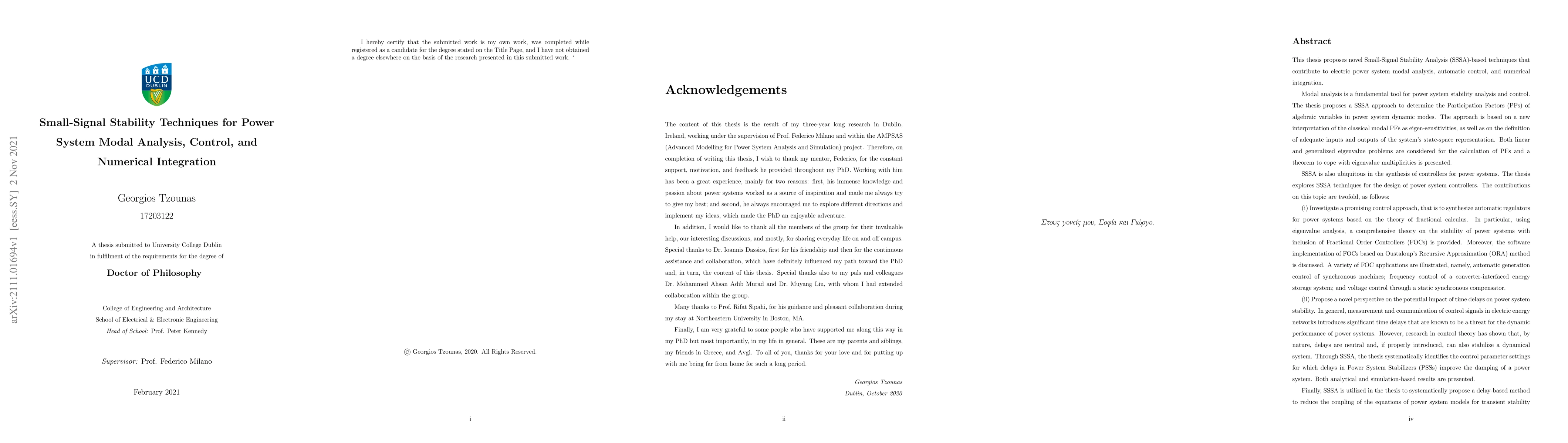 Federico Milano, Georgios Tzounas, Ioannis Dassios