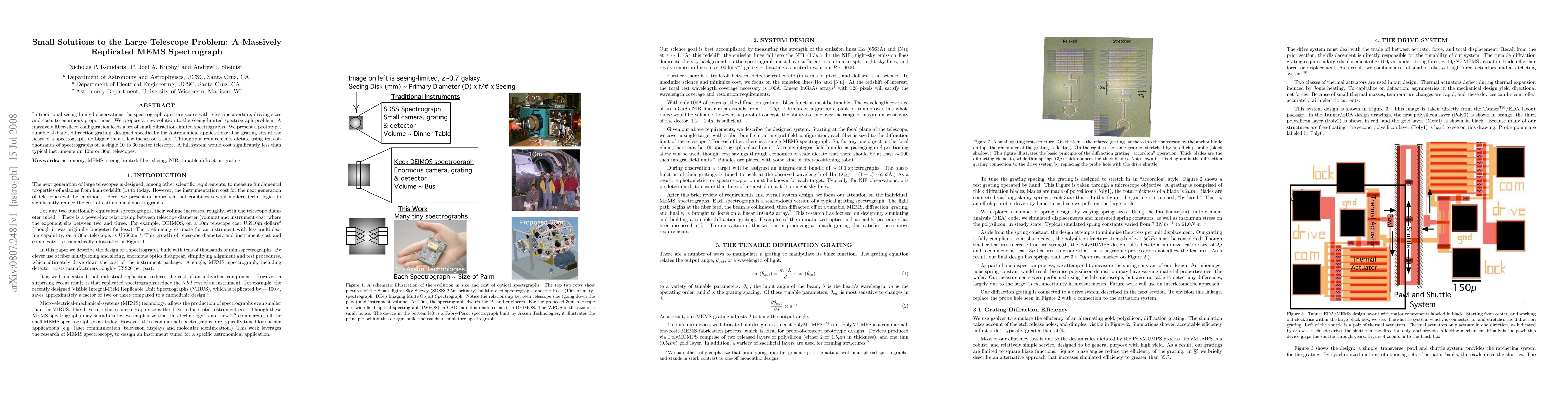In traditional seeing-limited observations the spectrograph aperture scales with telescope aperture, driving sizes and costs to enormous proportions. We propose a new solution to the seeing-limited spectrograph problem. A massively fiber-sliced configuration feeds a set of small diffraction-limited spectrographs. We present a prototype, tunable, J-band, diffraction grating, designed specifically for Astronomical applications: The grating sits at the heart of a spectrograph, no bigger than a few inches on a side. Throughput requirements dictate using tens-of-thousands of spectrographs on a single 10 to 30 meter telescope. A full system would cost significantly less than typical instruments on 10m or 30m telescopes.