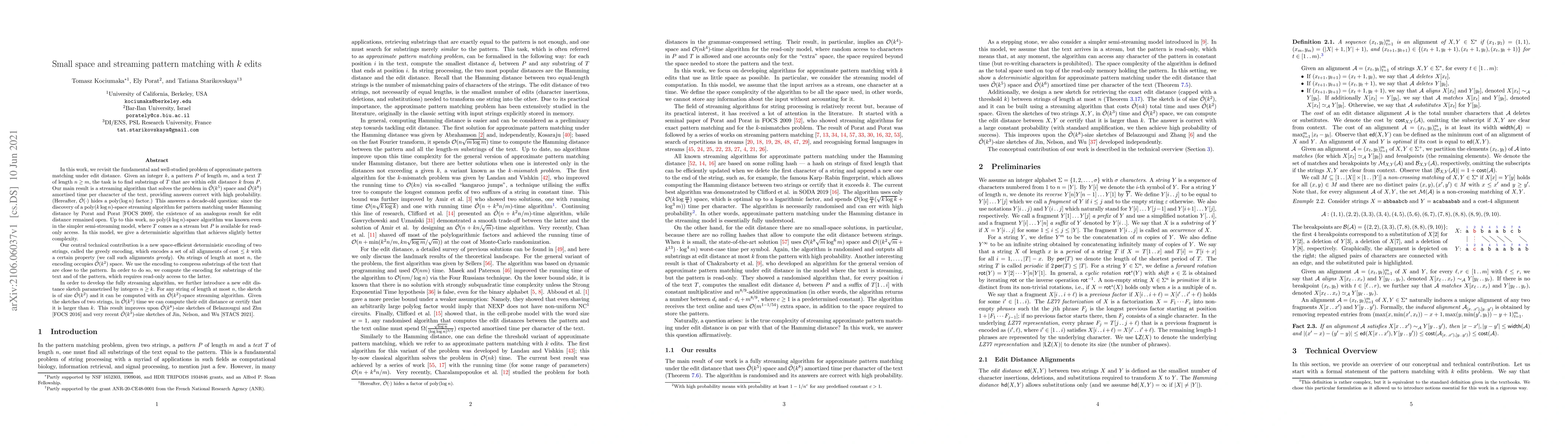 This paper presents a streaming algorithm for approximate pattern matching under edit distance, solving the problem in $\tilde{O}(k^5)$ space and $\tilde{O}(k^8)$ amortised time per text character. It introduces a new edit distance sketch, improving upon previous results and answering a decade-old question regarding poly$(k\log n)$-space solutions for edit distance.