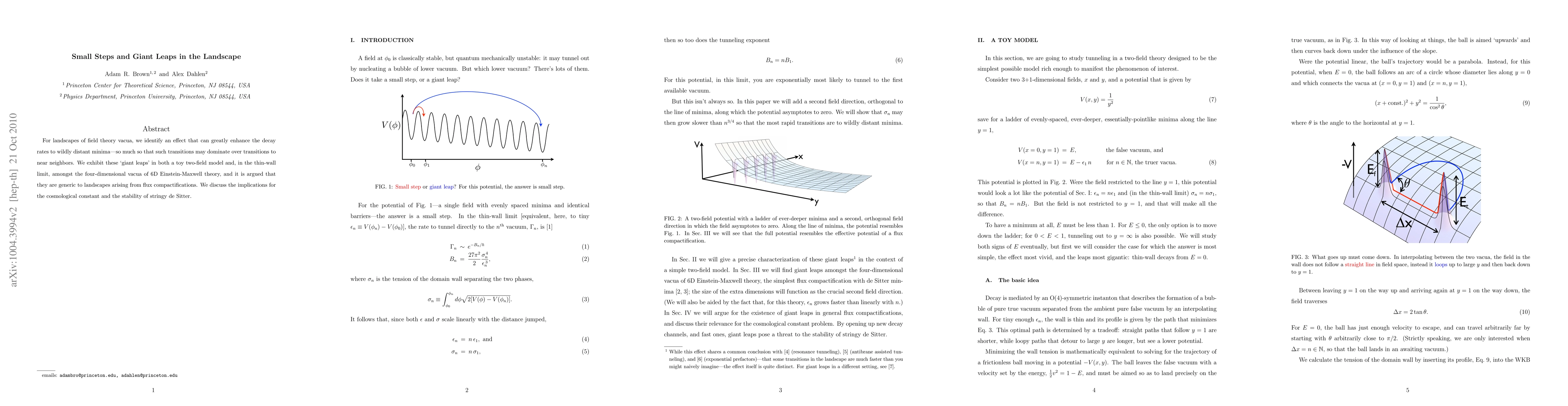 For landscapes of field theory vacua, we identify an effect that can greatly enhance the decay rates to wildly distant minima--so much so that such transitions may dominate over transitions to near neighbors. We exhibit these 'giant leaps' in both a toy two-field model and, in the thin-wall approximation, amongst the four-dimensional vacua of 6D Einstein-Maxwell theory, and it is argued that they are generic to landscapes arising from flux compactifications. We discuss the implications for the cosmological constant and the stability of stringy de Sitter.