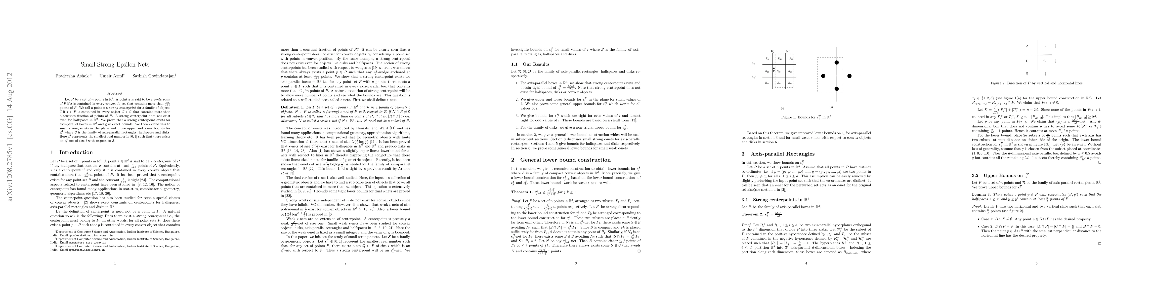 Let P be a set of n points in $\mathbb{R}^d$. A point x is said to be a centerpoint of P if x is contained in every convex object that contains more than $dn\over d+1$ points of P. We call a point x a strong centerpoint for a family of objects $\mathcal{C}$ if $x \in P$ is contained in every object $C \in \mathcal{C}$ that contains more than a constant fraction of points of P. A strong centerpoint does not exist even for halfspaces in $\mathbb{R}^2$. We prove that a strong centerpoint exists for axis-parallel boxes in $\mathbb{R}^d$ and give exact bounds. We then extend this to small strong $\epsilon$-nets in the plane and prove upper and lower bounds for $\epsilon_i^\mathcal{S}$ where $\mathcal{S}$ is the family of axis-parallel rectangles, halfspaces and disks. Here $\epsilon_i^\mathcal{S}$ represents the smallest real number in $[0,1]$ such that there exists an $\epsilon_i^\mathcal{S}$-net of size i with respect to $\mathcal{S}$.