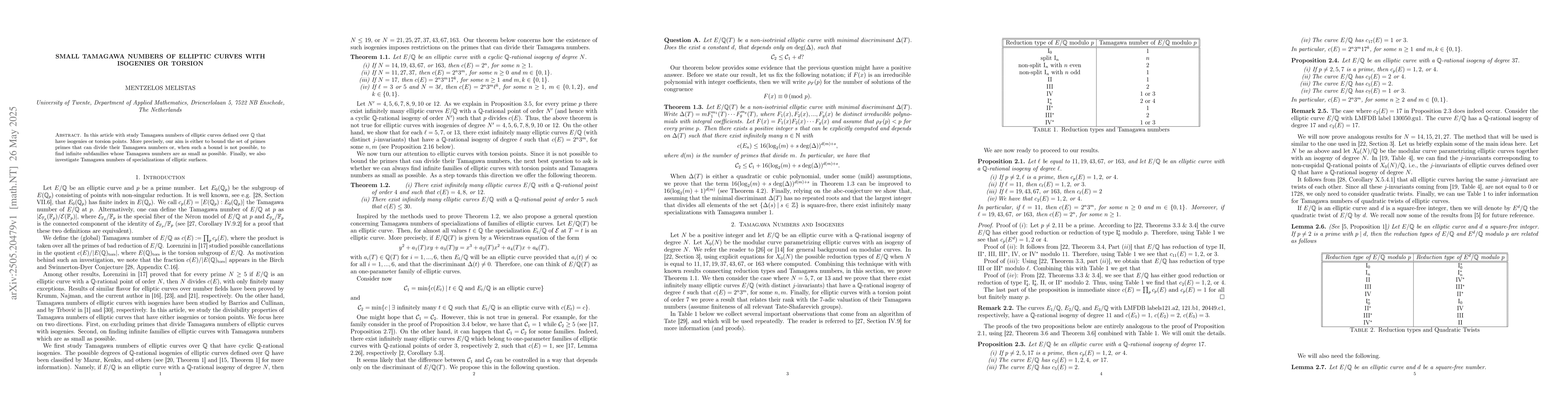 This paper investigates Tamagawa numbers of elliptic curves with isogenies or torsion points, aiming to bound or find subfamilies with small Tamagawa numbers.