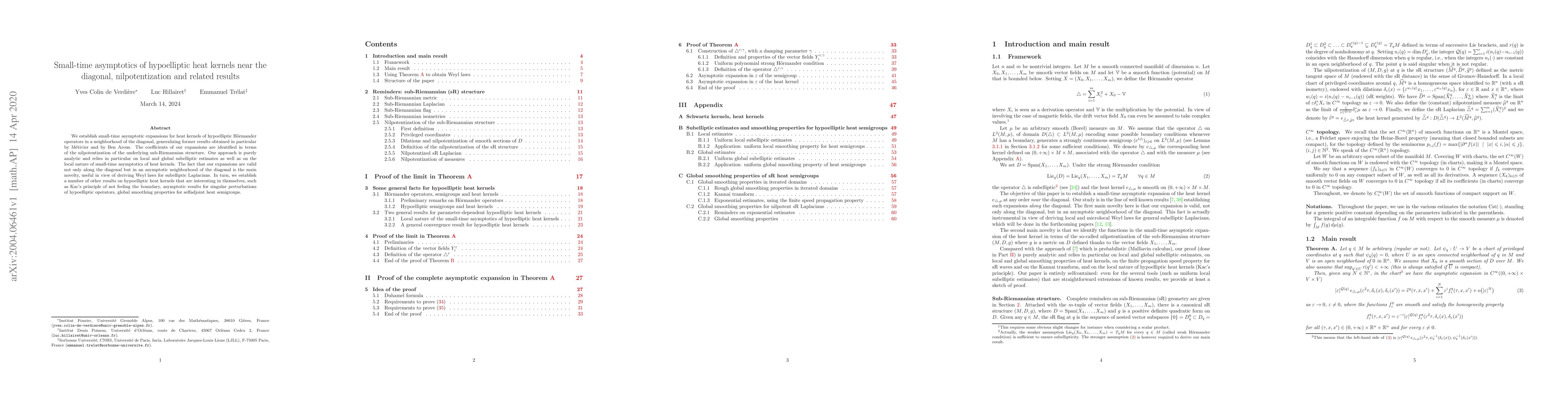 We establish small-time asymptotic expansions for heat kernels of hypoelliptic H\"ormander operators in a neighborhood of the diagonal, generalizing former results obtained in particular by M\'etivier and by Ben Arous. The coefficients of our expansions are identified in terms of the nilpotentization of the underlying sub-Riemannian structure. Our approach is purely analytic and relies in particular on local and global subelliptic estimates as well as on the local nature of small-time asymptotics of heat kernels. The fact that our expansions are valid not only along the diagonal but in an asymptotic neighborhood of the diagonal is the main novelty, useful in view of deriving Weyl laws for subelliptic Laplacians. In turn, we establish a number of other results on hypoelliptic heat kernels that are interesting in themselves, such as Kac's principle of not feeling the boundary, asymptotic results for singular perturbations of hypoelliptic operators, global smoothing properties for selfadjoint heat semigroups.