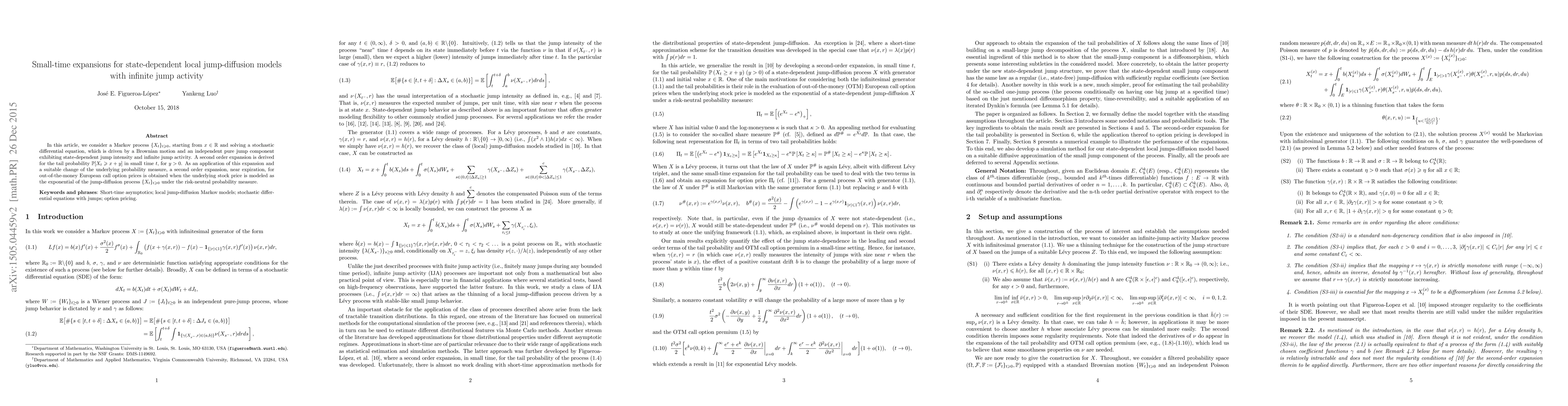This paper derives a second-order expansion for the tail probability of a state-dependent local jump-diffusion process with infinite jump activity in small time. It further applies this expansion to obtain a second-order approximation near expiration for out-of-the-money European call option prices under the risk-neutral measure.