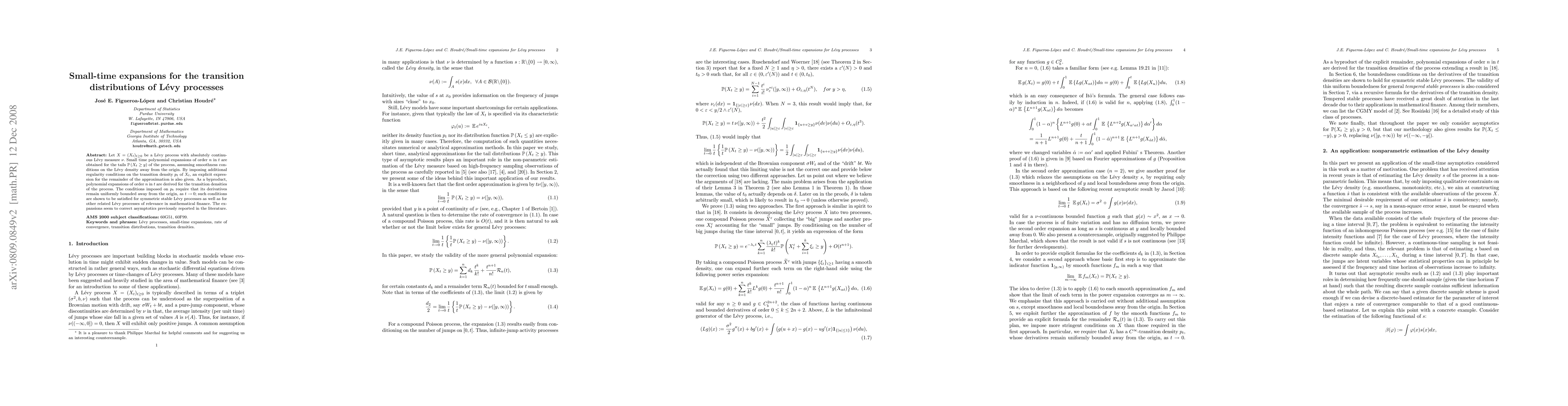 This paper derives small-time polynomial expansions for the transition distributions of Lévy processes, focusing on the tails and transition densities under specific smoothness and regularity conditions. It corrects prior asymptotics and applies to symmetric stable Lévy processes and others in mathematical finance.