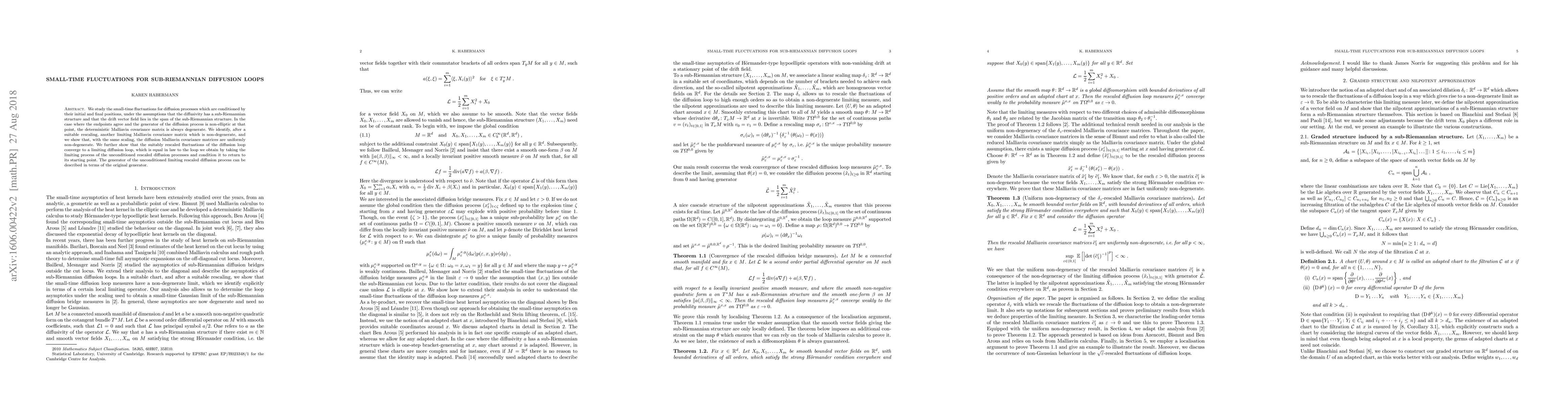 This paper investigates small-time fluctuations in sub-Riemannian diffusion processes conditioned by their initial and final positions. It identifies a non-degenerate limiting Malliavin covariance matrix and demonstrates that suitably rescaled diffusion loop fluctuations converge to a limiting diffusion loop, which is equivalent to the conditioned limiting process of unconditioned rescaled diffusions.