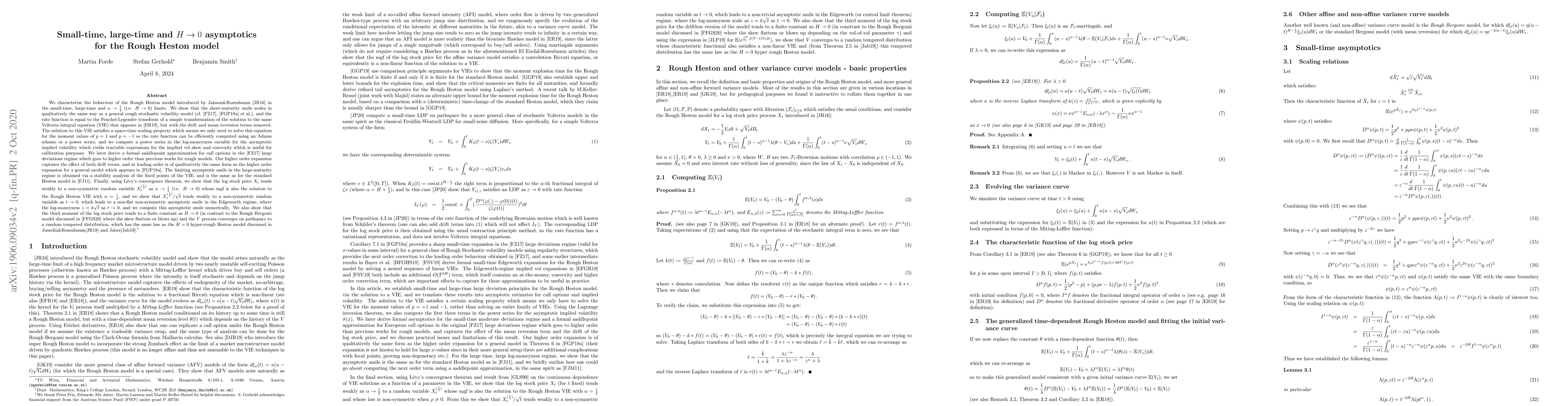 This research paper analyzes the Rough Heston model, characterizing its behavior in small-time, large-time, and as $H\to 0$ limits. Key findings include the smile scaling similar to general rough volatility models, an efficiently computed rate function, and tractable expressions for implied vol skew and convexity. The large-maturity asymptotic smile is shown to match the standard Heston model. The log stock price tends to a non-symmetric random variable as $H\to 0$, causing a non-flat, non-symmetric asymptotic smile. Unlike the Rough Bergomi model, the third moment of the log stock price converges to a finite constant as $H\to 0$.
