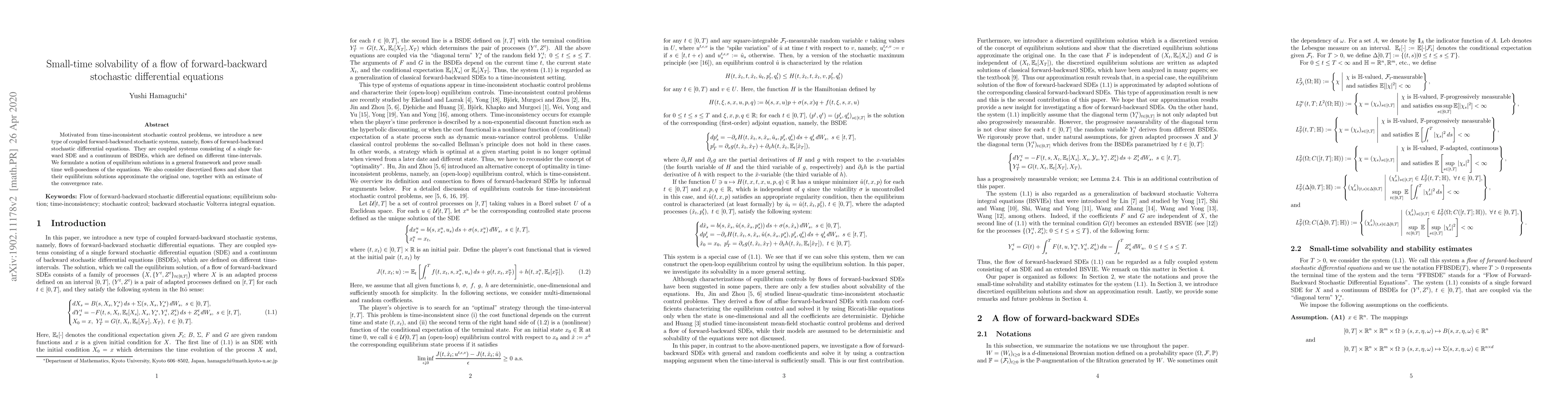 This paper introduces a new type of coupled forward-backward stochastic systems, termed flows of forward-backward stochastic differential equations, and proves their small-time solvability. It also demonstrates the convergence rate of discretized flows to approximate the original equilibrium solutions.