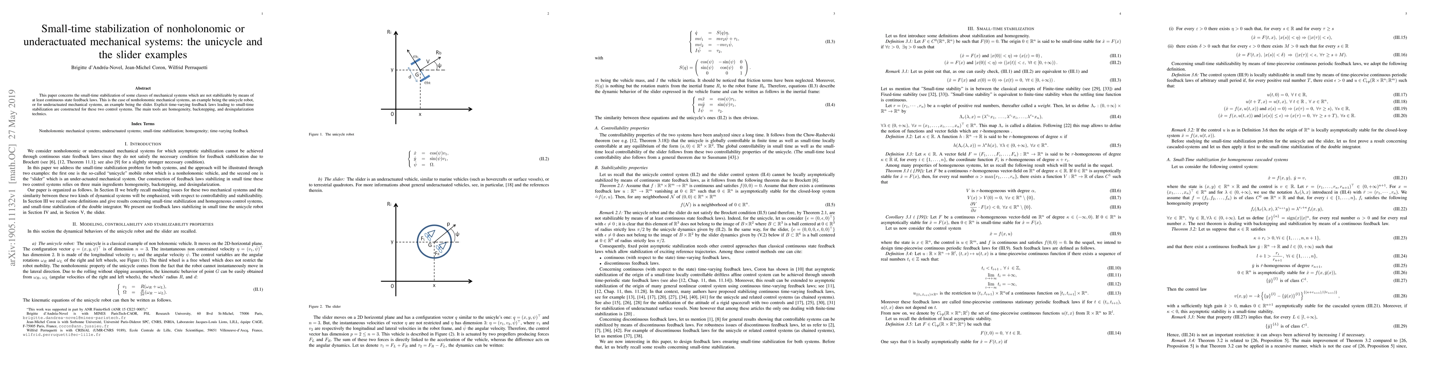 This paper develops explicit time-varying feedback laws for small-time stabilization of nonholonomic and underactuated mechanical systems, such as unicycle robots and sliders, using homogeneity, backstepping, and desingularization techniques. The focus is on systems that cannot be stabilized by continuous state feedback.