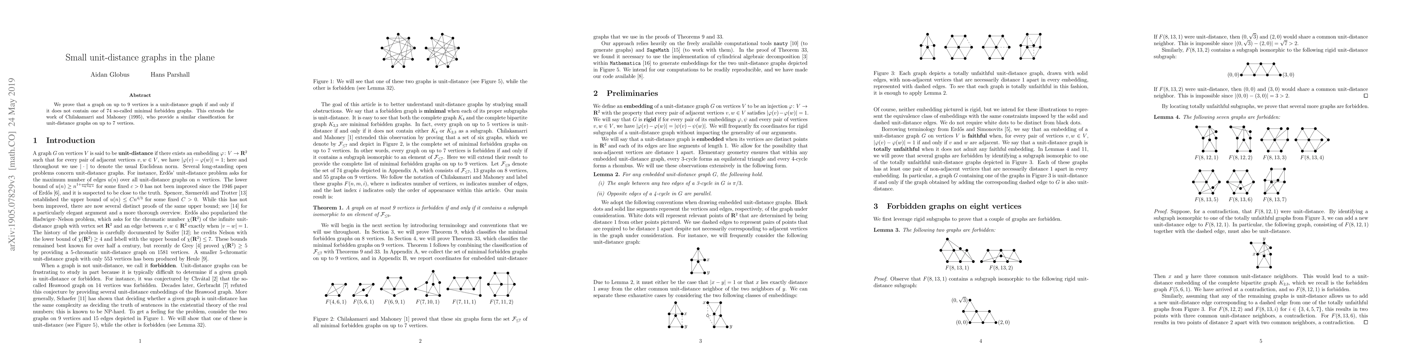 We prove that a graph on up to 9 vertices is a unit-distance graph if and only if it does not contain one of 74 so-called minimal forbidden graphs. This extends the work of Chilakamarri and Mahoney (1995), who provide a similar classification for unit-distance graphs on up to 7 vertices.