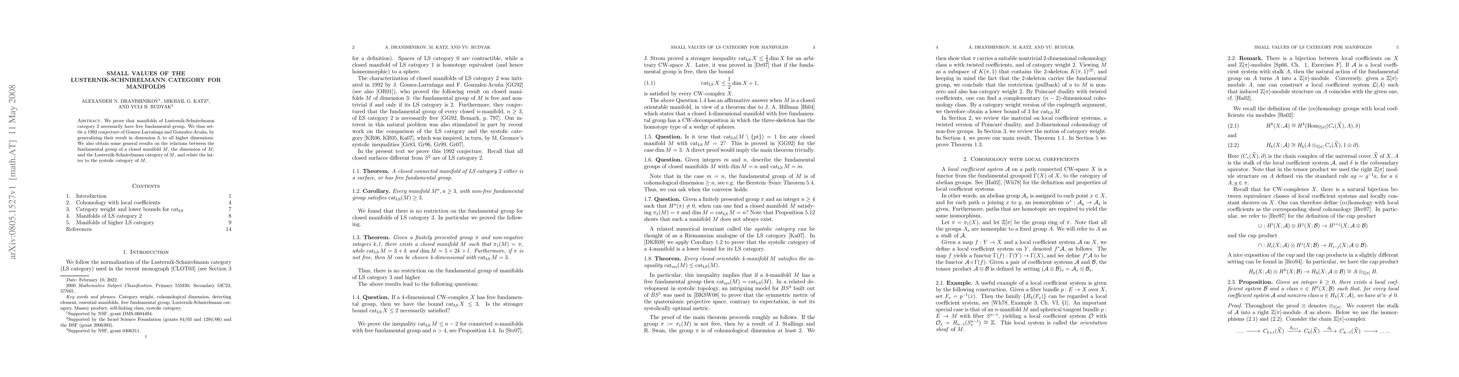 We prove that manifolds of Lusternik-Schnirelmann category 2 necessarily have free fundamental group. We thus settle a 1992 conjecture of Gomez-Larranaga and Gonzalez-Acuna, by generalizing their result in dimension 3, to all higher dimensions. We also obtain some general results on the relations between the fundamental group of a closed manifold M, the dimension of M, and the Lusternik-Schnirelmann category of M, and relate the latter to the systolic category of M.