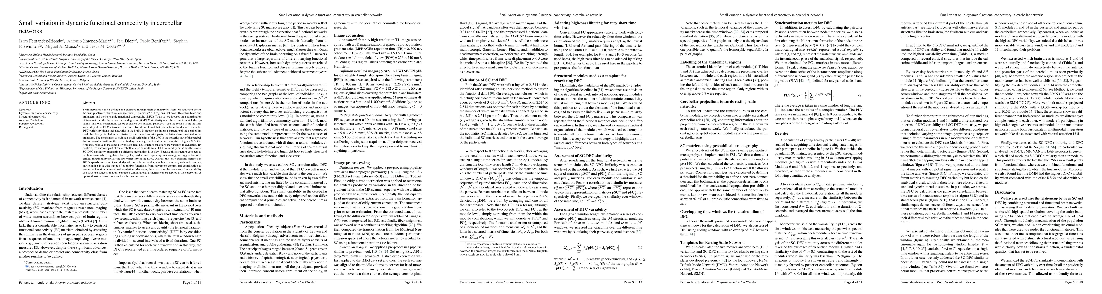 This study analyzed cerebellar networks and found that they exhibit smaller dynamic functional connectivity variability compared to other brain regions, with distinct posterior and anterior parts having unique characteristics.