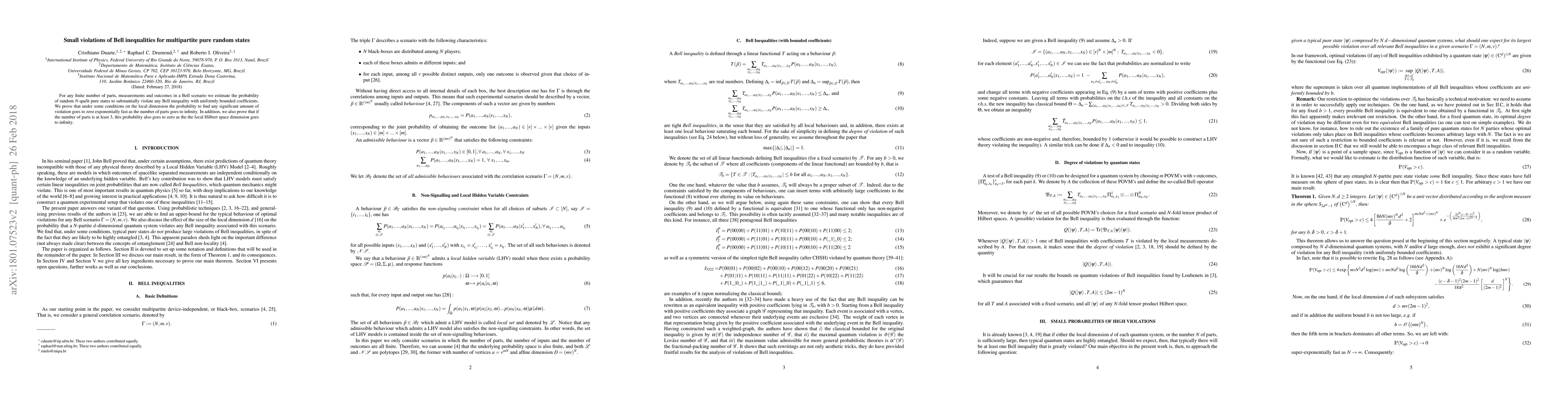 This paper investigates the probability of random multipartite pure quantum states violating Bell inequalities. It shows that for large numbers of parts, the probability of significant violations diminishes exponentially, and for at least three parts, it also decreases with increasing local Hilbert space dimension.