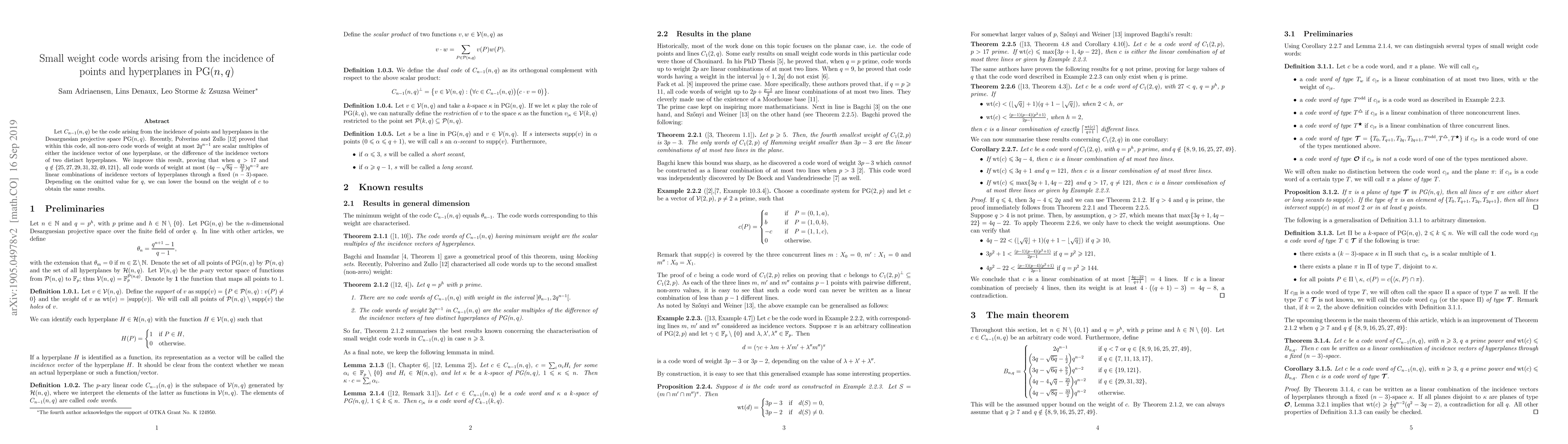 Let $C_{n-1}(n,q)$ be the code arising from the incidence of points and hyperplanes in the Desarguesian projective space PG($n,q$). Recently, Polverino and Zullo proved that within this code, all non-zero code words of weight at most $2q^{n-1}$ are scalar multiples of either the incidence vector of one hyperplane, or the difference of the incidence vectors of two distinct hyperplanes. We improve this result, proving that when $q>17$ and $q\notin\{25,27,29,31,32,49,121\}$, all code words of weight at most $(4q-\sqrt{8q}-\frac{33}{2})q^{n-2}$ are linear combinations of incidence vectors of hyperplanes through a fixed $(n-3)$-space. Depending on the omitted value for $q$, we can lower the bound on the weight of $c$ to obtain the same results.