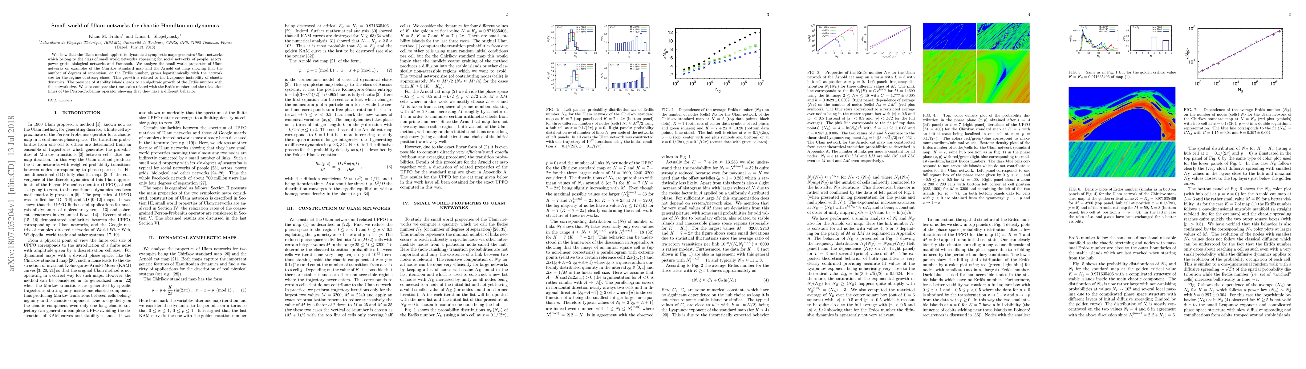 We show that the Ulam method applied to dynamical symplectic maps generates Ulam networks which belong to the class of small world networks appearing for social networks of people, actors, power grids, biological networks and Facebook. We analyze the small world properties of Ulam networks on examples of the Chirikov standard map and the Arnold cat map showing that the number of degrees of separation, or the Erd\"os number, grows logarithmically with the network size for the regime of strong chaos. This growth is related to the Lyapunov instability of chaotic dynamics. The presence of stability islands leads to an algebraic growth of the Erd\"os number with the network size. We also compare the time scales related with the Erd\"os number and the relaxation times of the Perron-Frobenius operator showing that they have a different behavior.