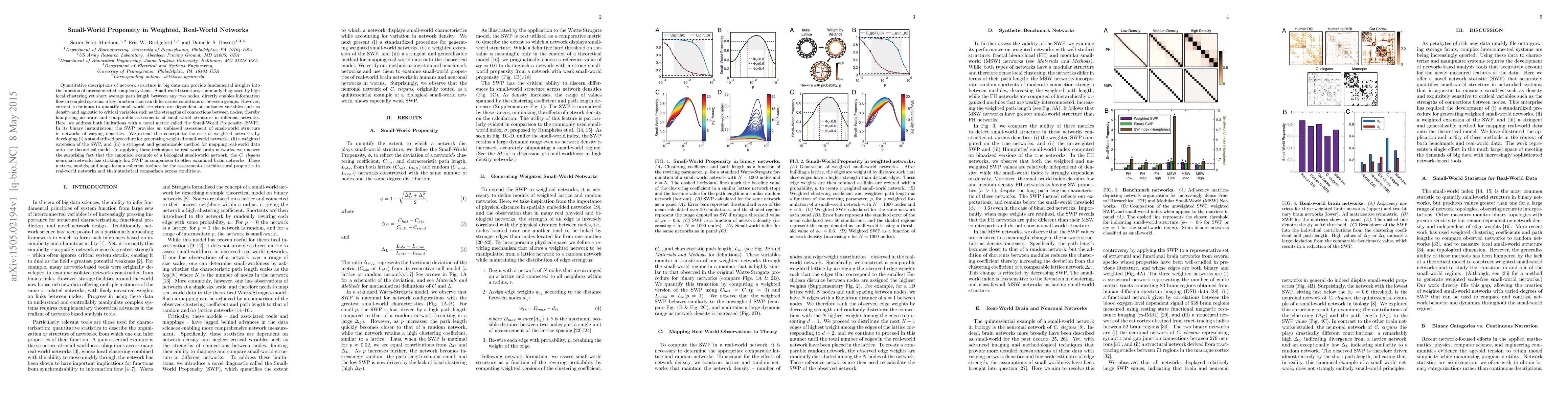 The research introduces a novel metric called Small-World Propensity (SWP) to quantify small-world structure in networks, addressing limitations of existing techniques by being agnostic to critical variables like connection strengths and independent of nuisance variables such as density.