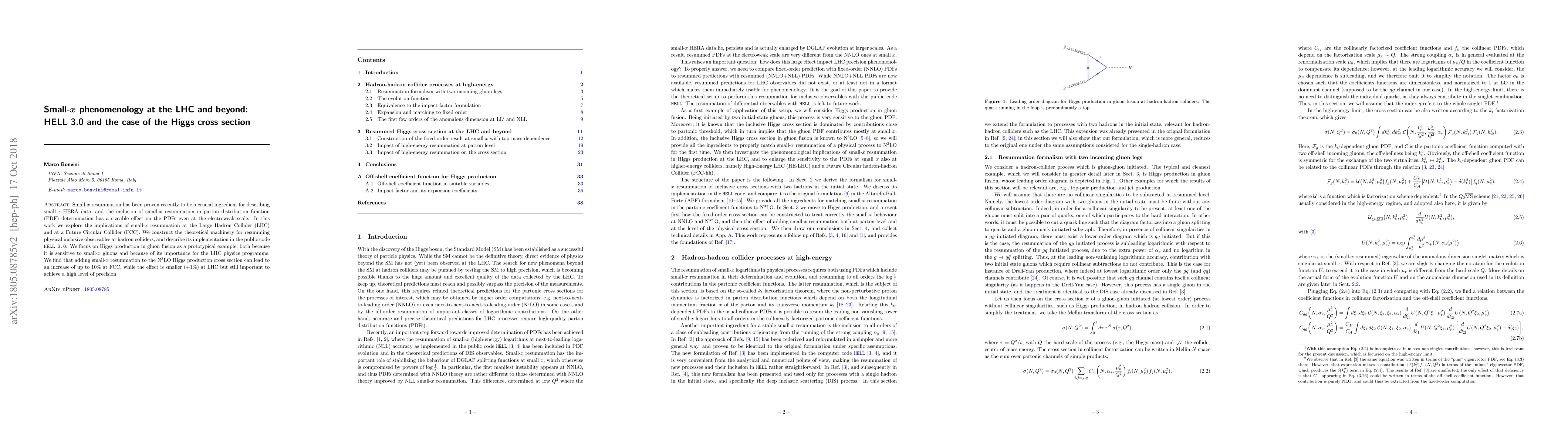 This paper explores the impact of small-$x$ resummation on parton distribution functions and Higgs cross section at the LHC and FCC, implementing this in the HELL 3.0 code. It finds that small-$x$ resummation can increase the N$^3$LO Higgs production cross section by up to 10% at FCC and +1% at LHC, highlighting its importance for precision measurements.