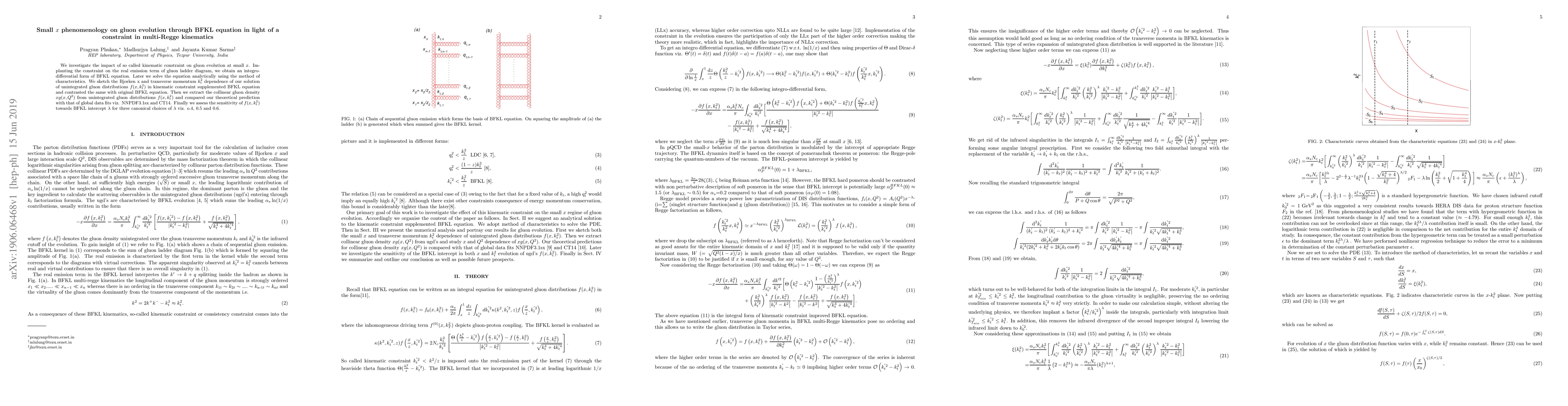 We investigate the impact of so called kinematic constraint on gluon evolution at small $x$. Implanting the constraint on the real emission term of gluon ladder diagram, we obtain an integro-differential form of BFKL equation. Later we solve the equation analytically using the method of characteristics. We sketch the Bjorken x and transverse momentum $k_t^2$ dependence of our solution of unintegrated gluon distributions $f(x,k_t^2)$ in kinematic constraint supplemented BFKL equation and contrasted the same with original BFKL equation. Then we extract the collinear gluon density $xg(x,Q^2)$ from unintegrated gluon distributions $f(x,k_t^2)$ and compared our theoretical prediction with that of global data fits viz. NNPDF3.1sx and CT14. Finally we assess the sensitivity of $f(x,k_t^2)$ towards BFKL intercept $\lambda$ for three canonical choices of $\lambda$ viz. o.4, 0.5 and 0.6.