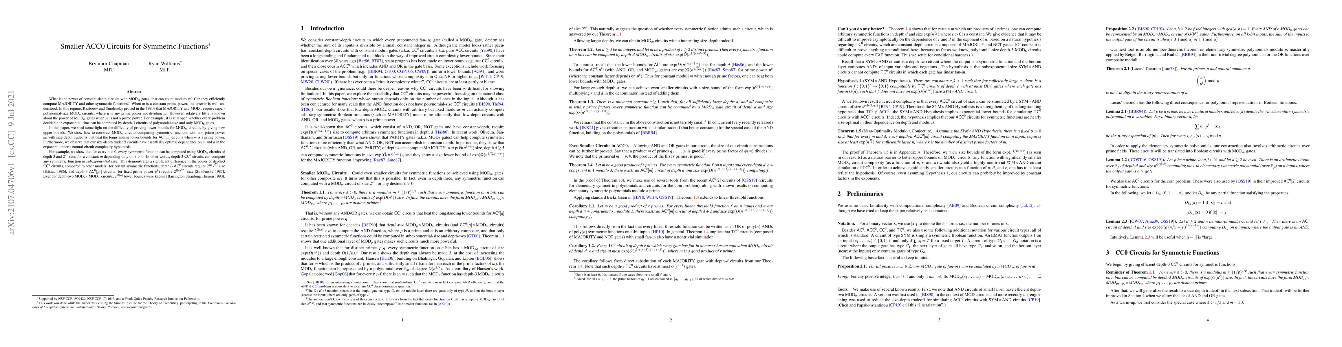 This paper constructs depth-3 $MOD_m$ circuits that compute symmetric functions with subexponential size, demonstrating their efficiency compared to $AC^0$ circuits. It highlights a significant power difference, showing that depth-3 $CC^0$ circuits can handle symmetric functions with significantly smaller sizes than $AC^0$ circuits, even for non-prime power $m$.
