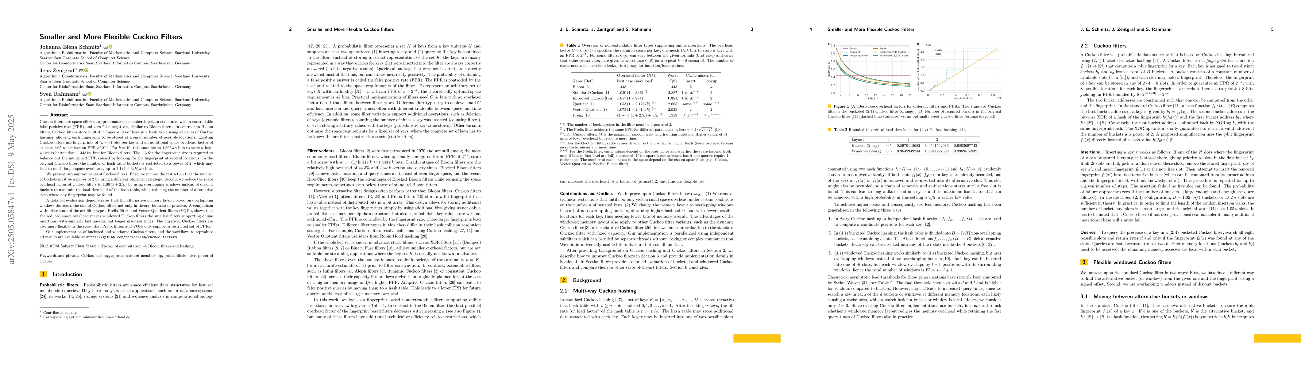 Researchers improved cuckoo filters to make them smaller and more flexible by removing storage restrictions and using overlapping windows, resulting in a reduced space overhead that makes them the smallest filters supporting online insertions.