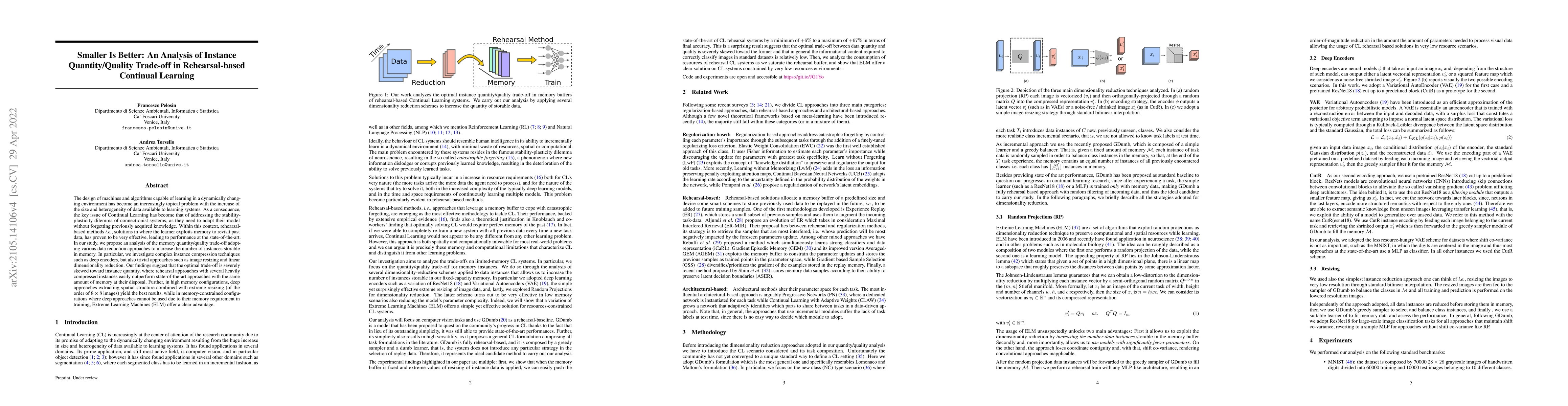 A study found that rehearsing on smaller, more compressed instances of data leads to better performance in continual learning tasks, especially when resources are limited. Deep learning approaches combined with aggressive image resizing outperform traditional methods under memory-constrained conditions.