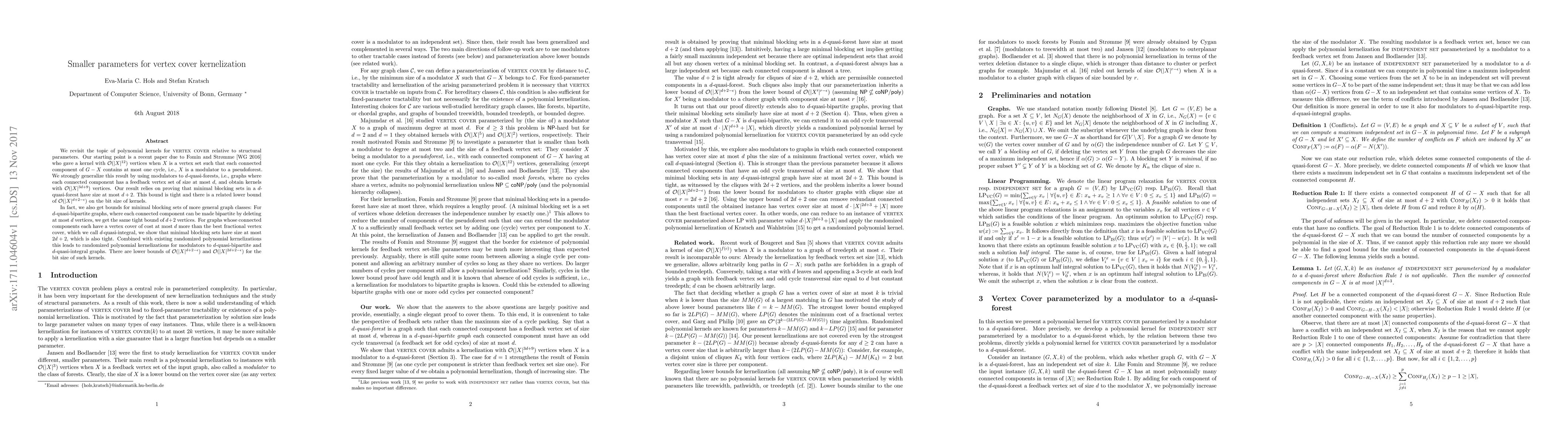 Researchers generalized a recent result on polynomial kernels for Vertex Cover to $d$-quasi-forests, obtaining smaller parameters and tight bounds for minimal blocking sets.