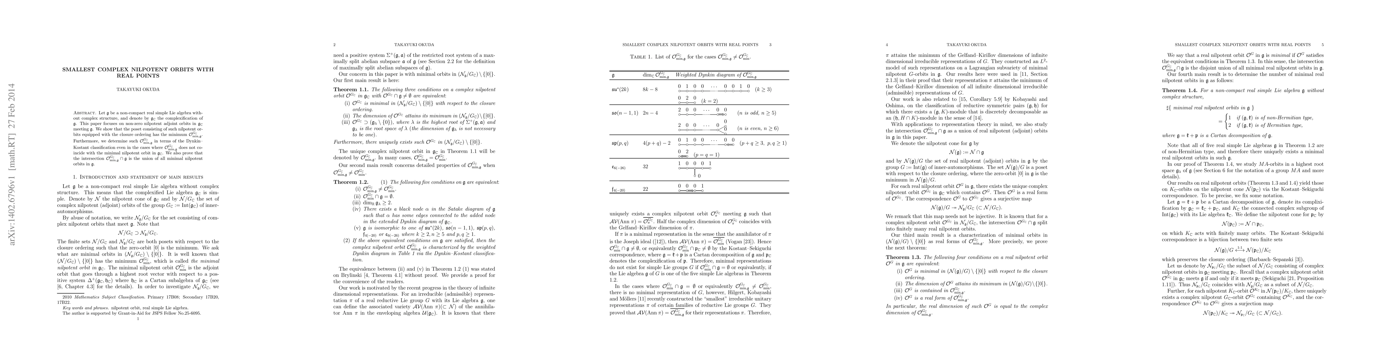 This paper identifies the smallest nilpotent orbits in a complex simple Lie algebra that intersect a non-compact real form, demonstrating the existence of a minimum such orbit in the poset of nilpotent orbits and determining its structure using Dynkin-Kostant classification. It also proves that the intersection of this orbit with the real form comprises all minimal nilpotent orbits in the real form.
