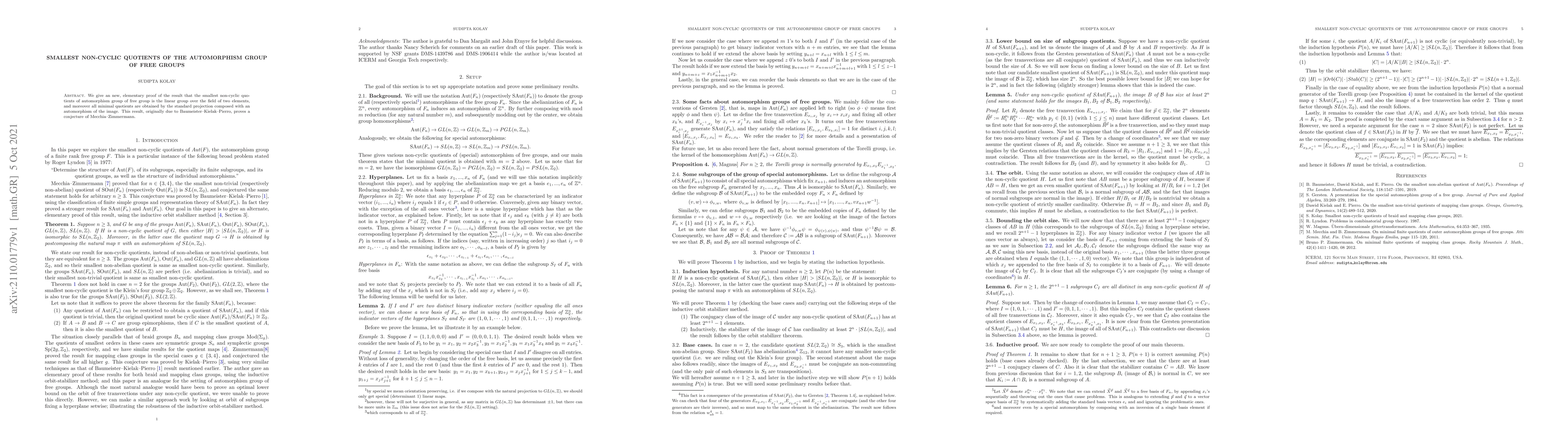 The smallest non-cyclic quotient of the automorphism group of a free group is proven to be the linear group over two elements, resolving a conjecture by Mecchia-Zimmermann.