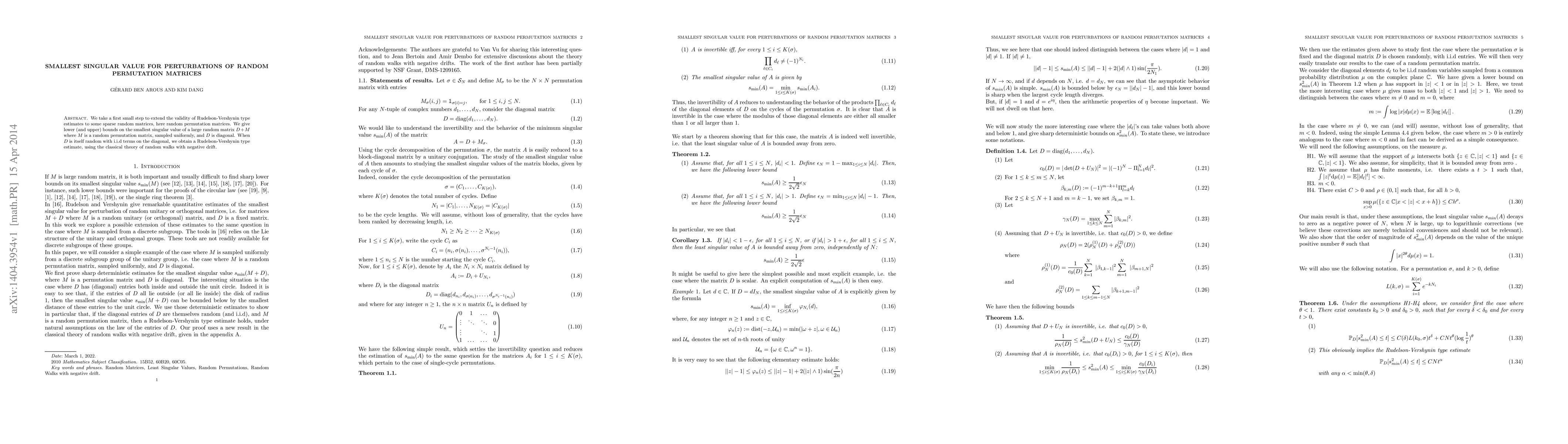 We take a first small step to extend the validity of Rudelson-Vershynin type estimates to some sparse random matrices, here random permutation matrices. We give lower (and upper) bounds on the smallest singular value of a large random matrix D+M where M is a random permutation matrix, sampled uniformly, and D is diagonal. When D is itself random with i.i.d terms on the diagonal, we obtain a Rudelson-Vershynin type estimate, using the classical theory of random walks with negative drift.