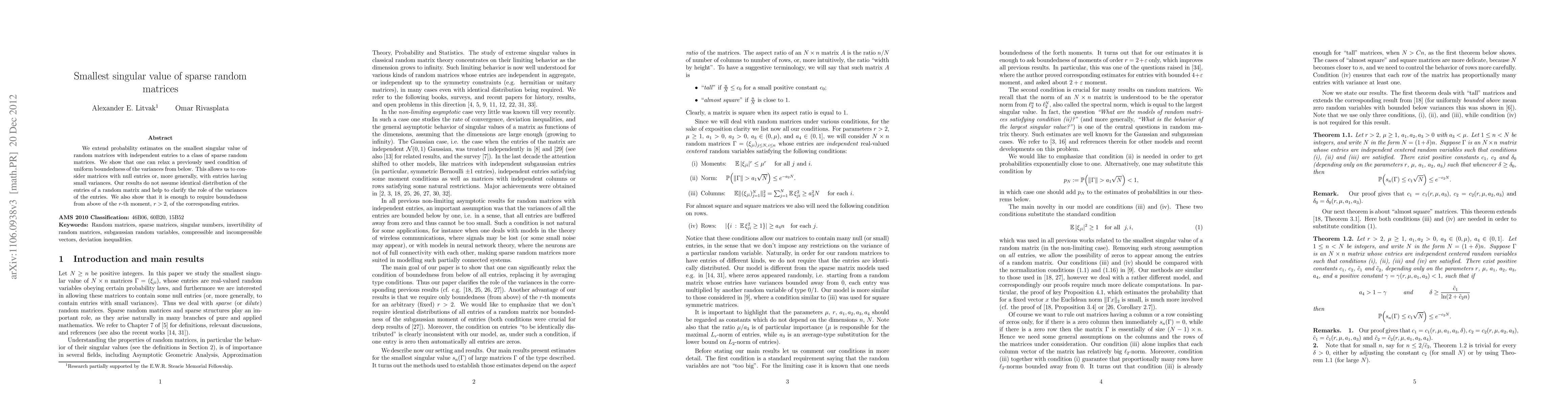 This paper extends probability estimates for the smallest singular value of sparse random matrices, showing that uniform boundedness of variances from below can be relaxed. It also demonstrates that boundedness from above of the $r$-th moment ($r > 2$) of entries suffices, without requiring identical distribution of entries.