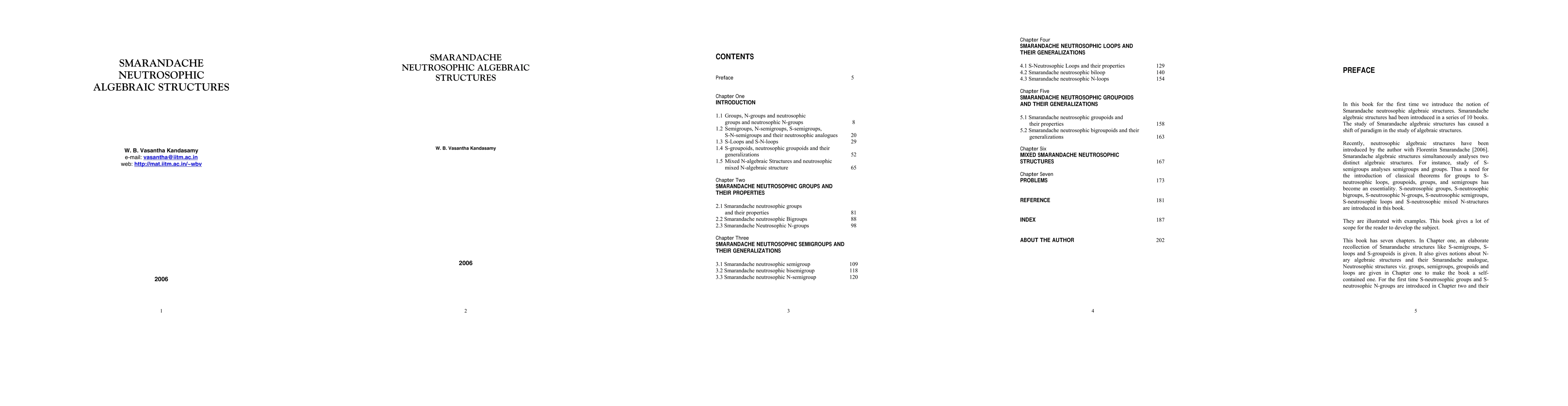 This book explores Smarandache Neutrosophic Algebraic Structures, introducing novel concepts like S-neutrosophic groups and S-neutrosophic N-groups, and discussing their properties alongside traditional neutrosophic structures. It concludes with a chapter of problems for further exploration.