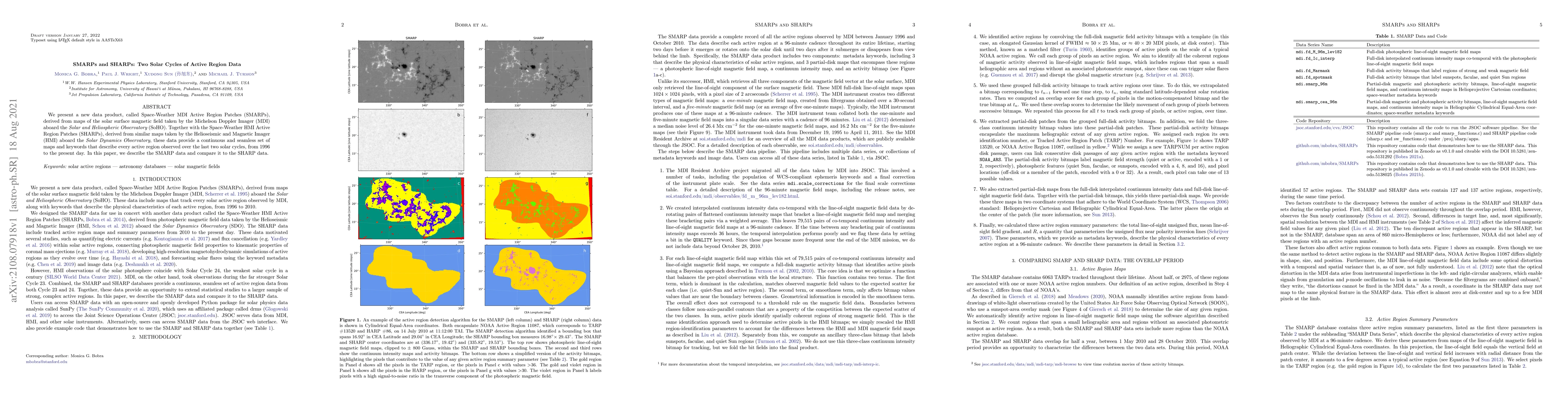 This paper introduces SMARPs, a data product from the MDI on SoHO, and SHARPs from the HMI on SDO, providing continuous solar magnetic field maps for the last two solar cycles. The paper details SMARPs and compares it with SHARPs to enhance space-weather monitoring.