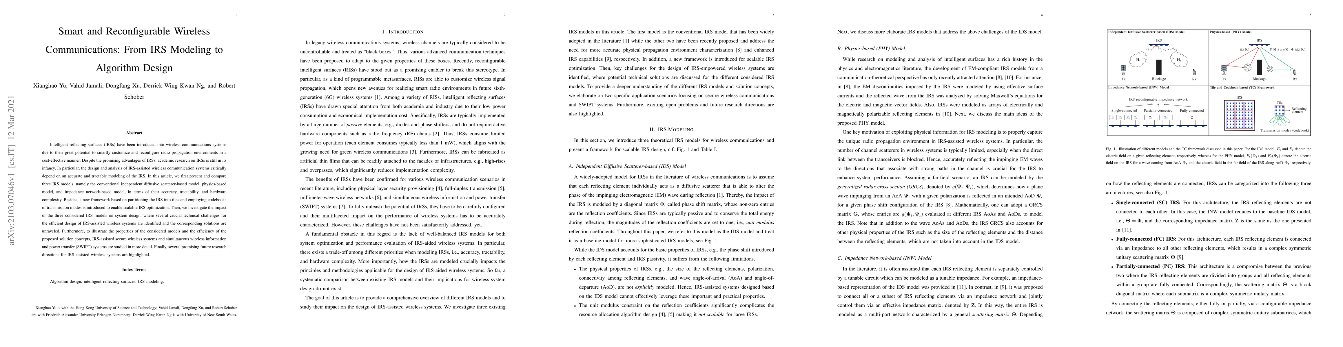 This paper explores intelligent reflecting surfaces (IRSs) for wireless communications, comparing three IRS models and introducing a new IRS optimization framework. It identifies technical challenges and proposes solutions for IRS-assisted systems, demonstrating the models' properties through secure wireless and SWIPT applications.