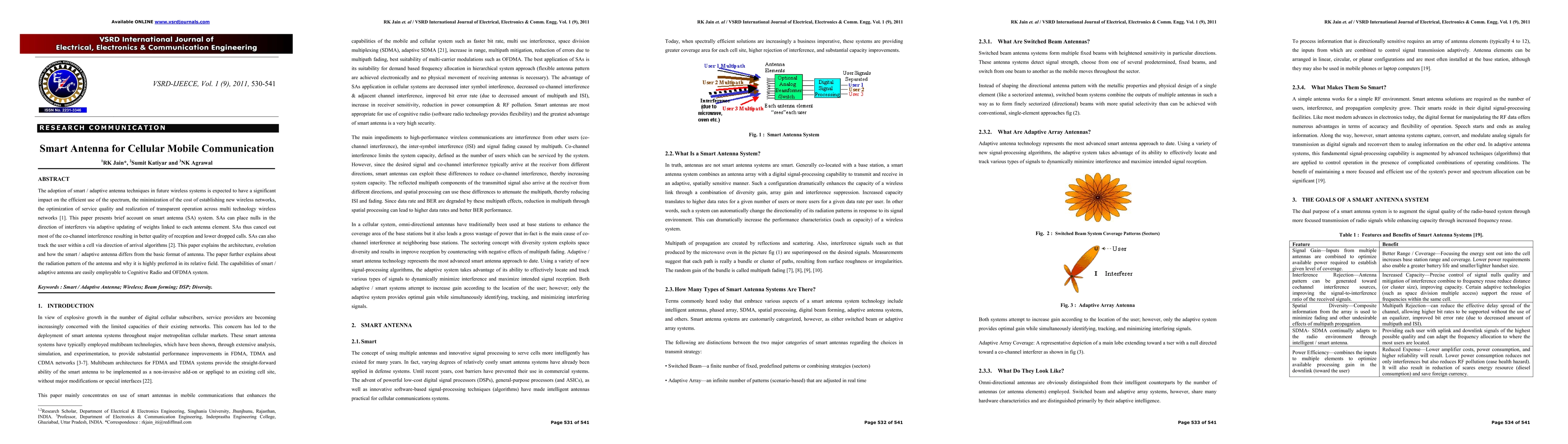 This paper discusses the architecture and benefits of smart antenna systems, which adaptively manage interference and optimize signal reception through adaptive weight updates, thus enhancing service quality and reducing costs in future wireless networks. The paper also explores the integration of smart antennas with Cognitive Radio and OFDMA systems.
