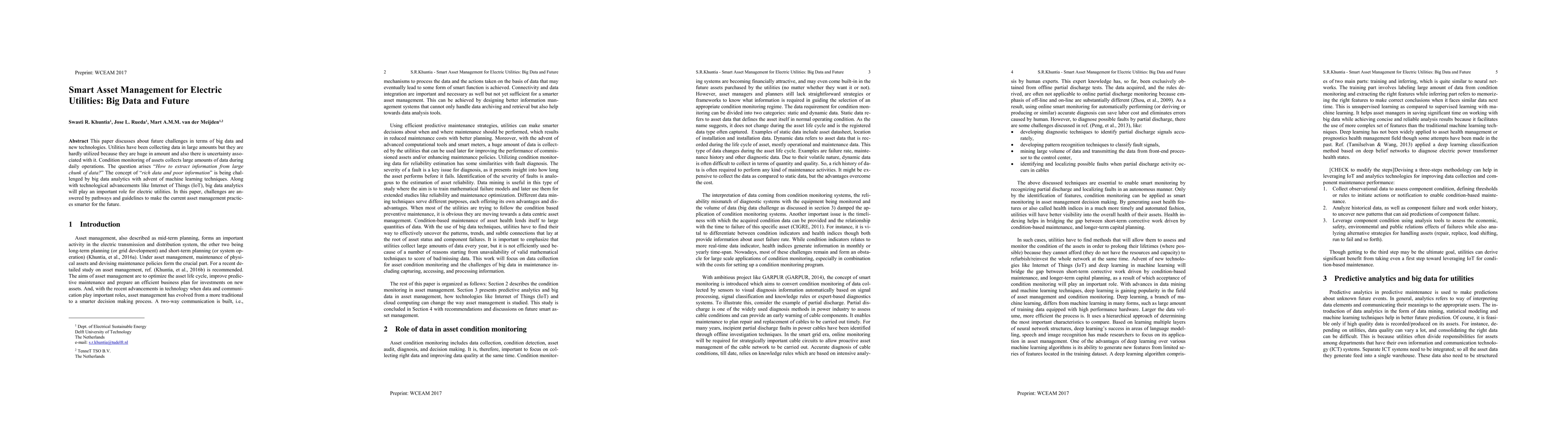 This paper discusses about future challenges in terms of big data and new technologies. Utilities have been collecting data in large amounts but they are hardly utilized because they are huge in amount and also there is uncertainty associated with it. Condition monitoring of assets collects large amounts of data during daily operations. The question arises "How to extract information from large chunk of data?" The concept of "rich data and poor information" is being challenged by big data analytics with advent of machine learning techniques. Along with technological advancements like Internet of Things (IoT), big data analytics will play an important role for electric utilities. In this paper, challenges are answered by pathways and guidelines to make the current asset management practices smarter for the future.