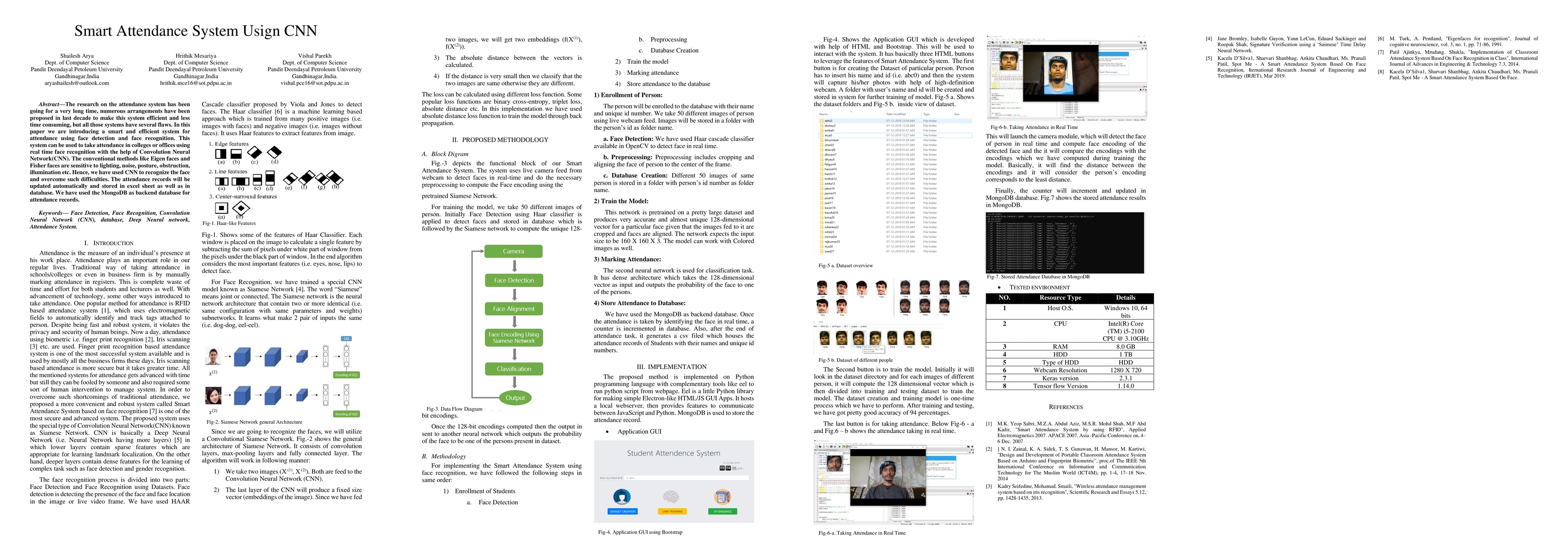 This paper proposes a smart attendance system using CNN for real-time face recognition, addressing flaws in conventional methods like Eigenfaces and Fisher faces. It automatically updates attendance records in both an Excel sheet and a MongoDB database.