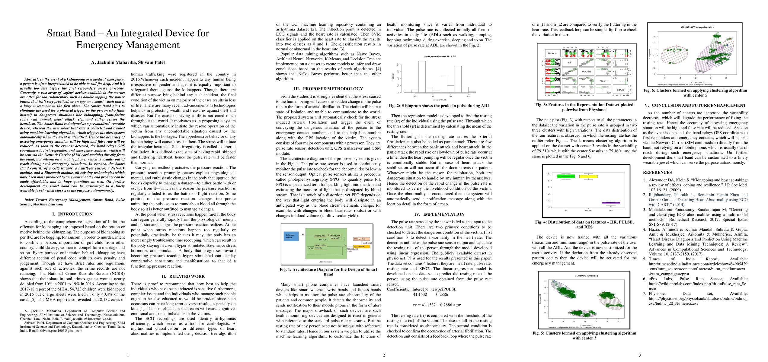In the event of a kidnapping or a medical emergency, a person is often incapacitated to be able to call for help. And it's usually too late before the first responders arrive on-scene. Currently, a vast array of 'safety' devices available in the market are often far too rudimentary such as double tapping the power button that isn't very practical, or an app on a smart watch that is a huge investment in the first place. The Smart Band aims to eliminate the need for a physical trigger by the person who finds himself in dangerous situations like kidnapping, front-facing some wild animal, heart attack, etc., and rather senses the heartbeat. The Smart Band is designed as a personalized wearable device, wherein the user heart beat rate is collected and trained using machine learning algorithm, which triggers the alert system automatically when the event is identified. Hence the accuracy of assessing emergency situation will be high and false rate will be reduced. As soon as the event is detected, the band relays GPS coordinates to first responders and emergency contacts, which will be sent via the Network Carrier (SIM card module) directly from the band, not relying on a mobile phone, which is usually out of reach during such emergency situations. In essence, the Smart Band consists of a GPS tracker, a heartbeat sensor, a Network module, and a Bluetooth module, all existing technologies which have been mass produced to an extent that the end product can be made affordable, and in huge quantities as well. On further development the smart band can be customized to a finely wearable jewel which can serve the purpose autonomously.