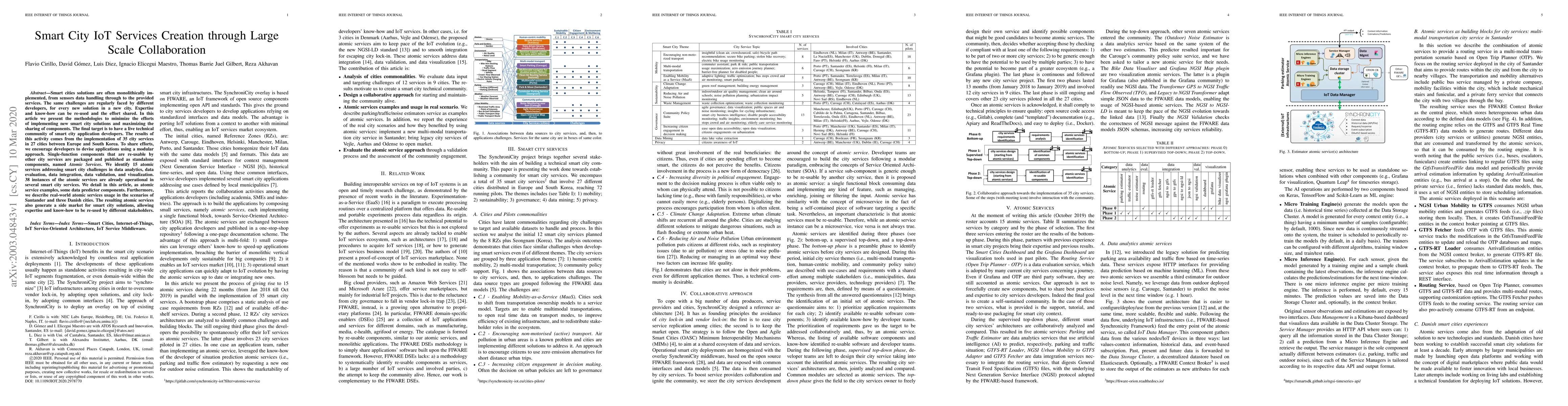 This paper proposes methodologies to collaboratively develop smart city IoT services by reusing modular components, termed Atomic Services, to minimize individual implementation efforts and maximize shared expertise. The study showcases 15 identified atomic services, with 38 instances operational across 27 cities, demonstrating their application in cities like Santander and Denmark.