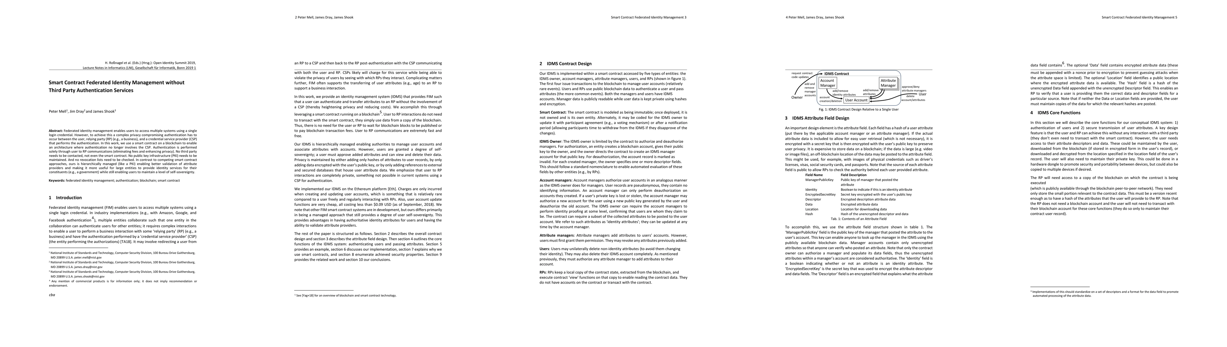 Federated identity management enables users to access multiple systems using a single login credential. However, to achieve this a complex privacy compromising authentication has to occur between the user, relying party (RP) (e.g., a business), and a credential service provider (CSP) that performs the authentication. In this work, we use a smart contract on a blockchain to enable an architecture where authentication no longer involves the CSP. Authentication is performed solely through user to RP communications (eliminating fees and enhancing privacy). No third party needs to be contacted, not even the smart contract. No public key infrastructure (PKI) needs to be maintained. And no revocation lists need to be checked. In contrast to competing smart contract approaches, ours is hierarchically managed (like a PKI) enabling better validation of attribute providers and making it more useful for large entities to provide identity services for their constituents (e.g., a government) while still enabling users to maintain a level of self-sovereignty.